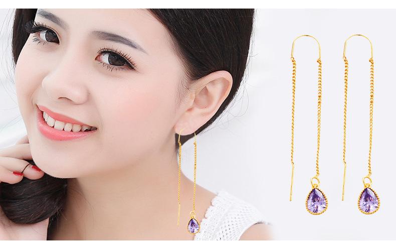 Pendientes de oro de imitación chapados en 24 quilates con diseño de hada, con gemas largas y personalidad, para mujer