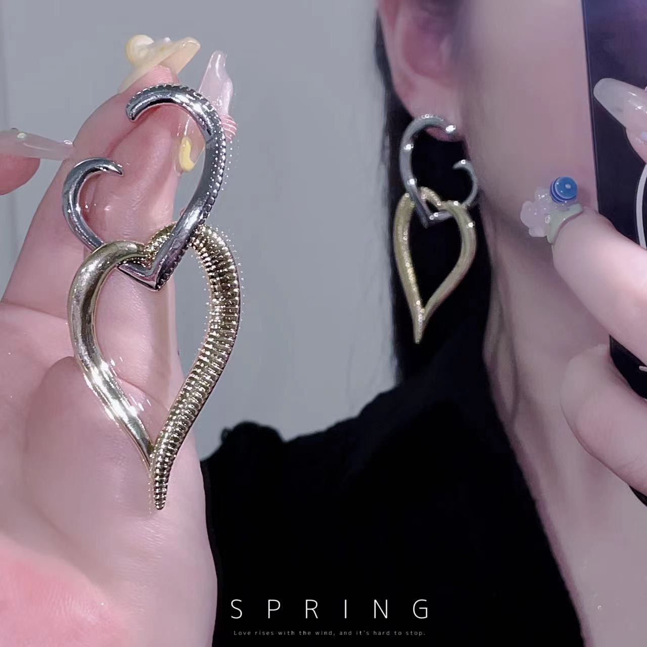 Aretes de Aguja de Plata con Contraste de Color Geométrico Heavy Metal, Hueco Irregular, Amor, Diseño Exagerado Europeo y Americano, Aretes Nicho