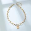 GOLD Buckle Necklace, White K-Button Necklace, Golden Necklace with Square Buckle, Square buckle head white k ...
