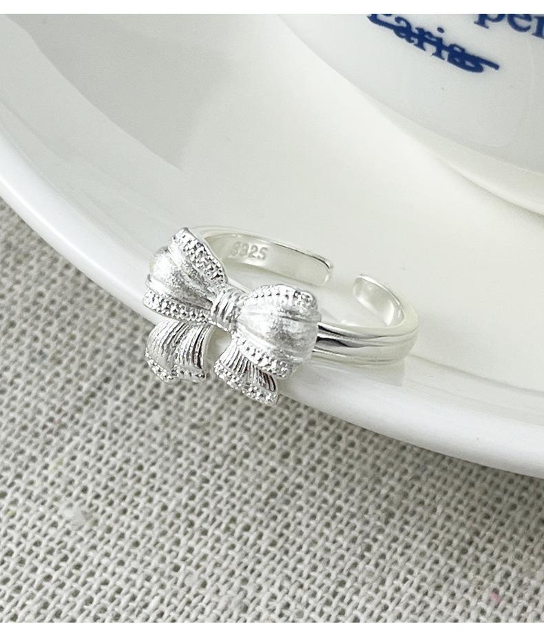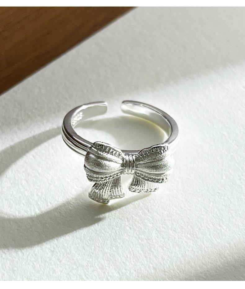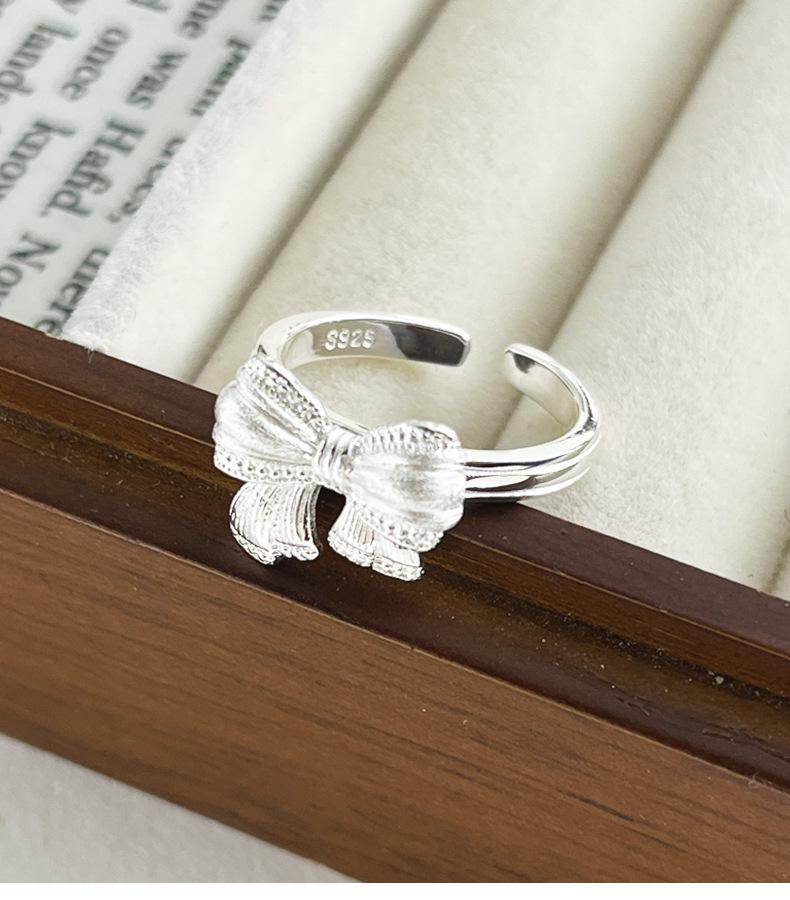 Anillo de plata de ley S925 con lazo, diseño de nicho de plata brillante, anillo de moda de lujo ligero J5886