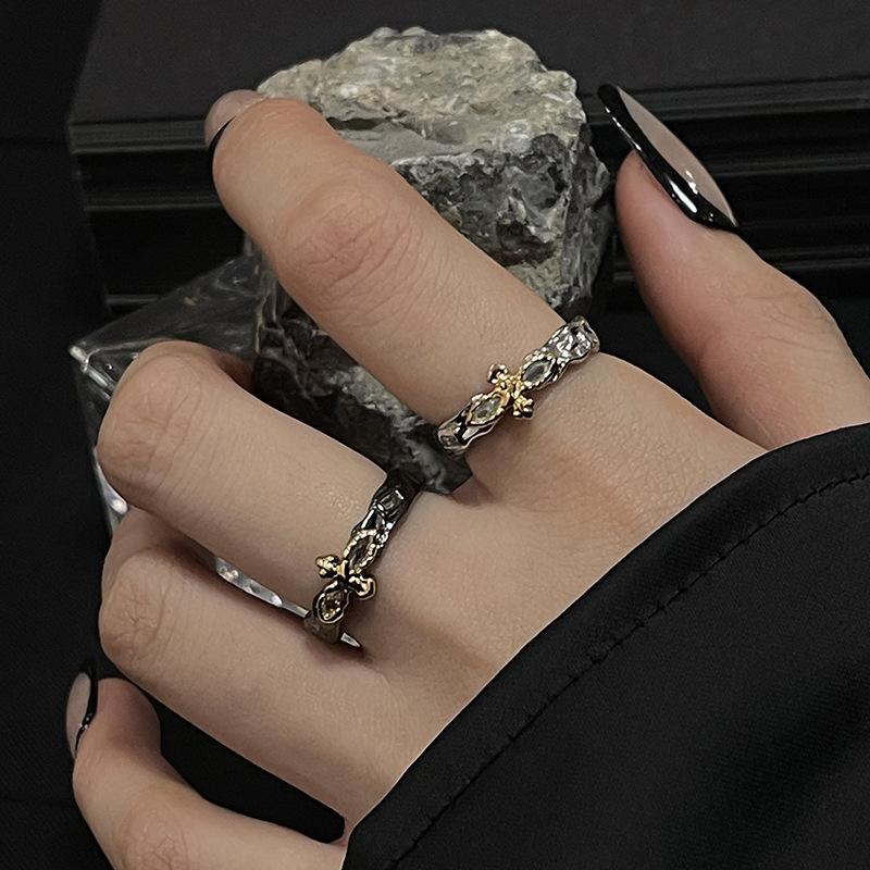 Anillo abierto negro personalizado con diseño de nicho retro, anillo para dedo índice con pliegues cruzados, anillo oscuro avanzado para parejas