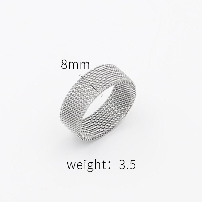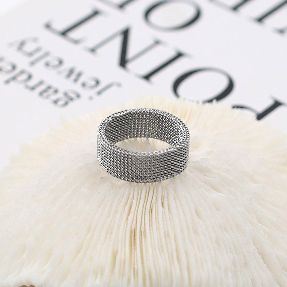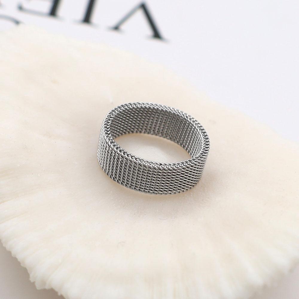 Anillo de malla tejida de acero de titanio de Amazon transfronterizo no se desvanece estilo ins malla simple anillo de mano para hombres y mujeres