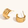 Accesorios transfronterizos, nicho de lujo, pendientes de tres capas de oro de 18 quilates, joyería para mujer, pendientes de acero inoxidable, pendientes de alta gama al por mayor