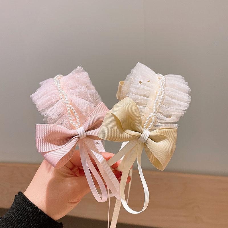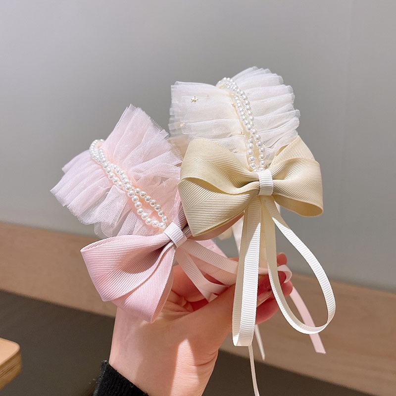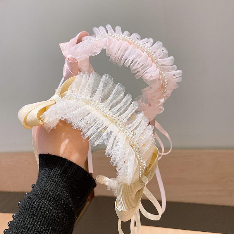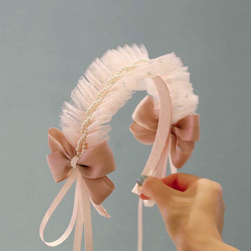 Diadema de Encaje con Perlas y Lazo Estilo Princesa Dulce para Niñas, Accesorios de Hada