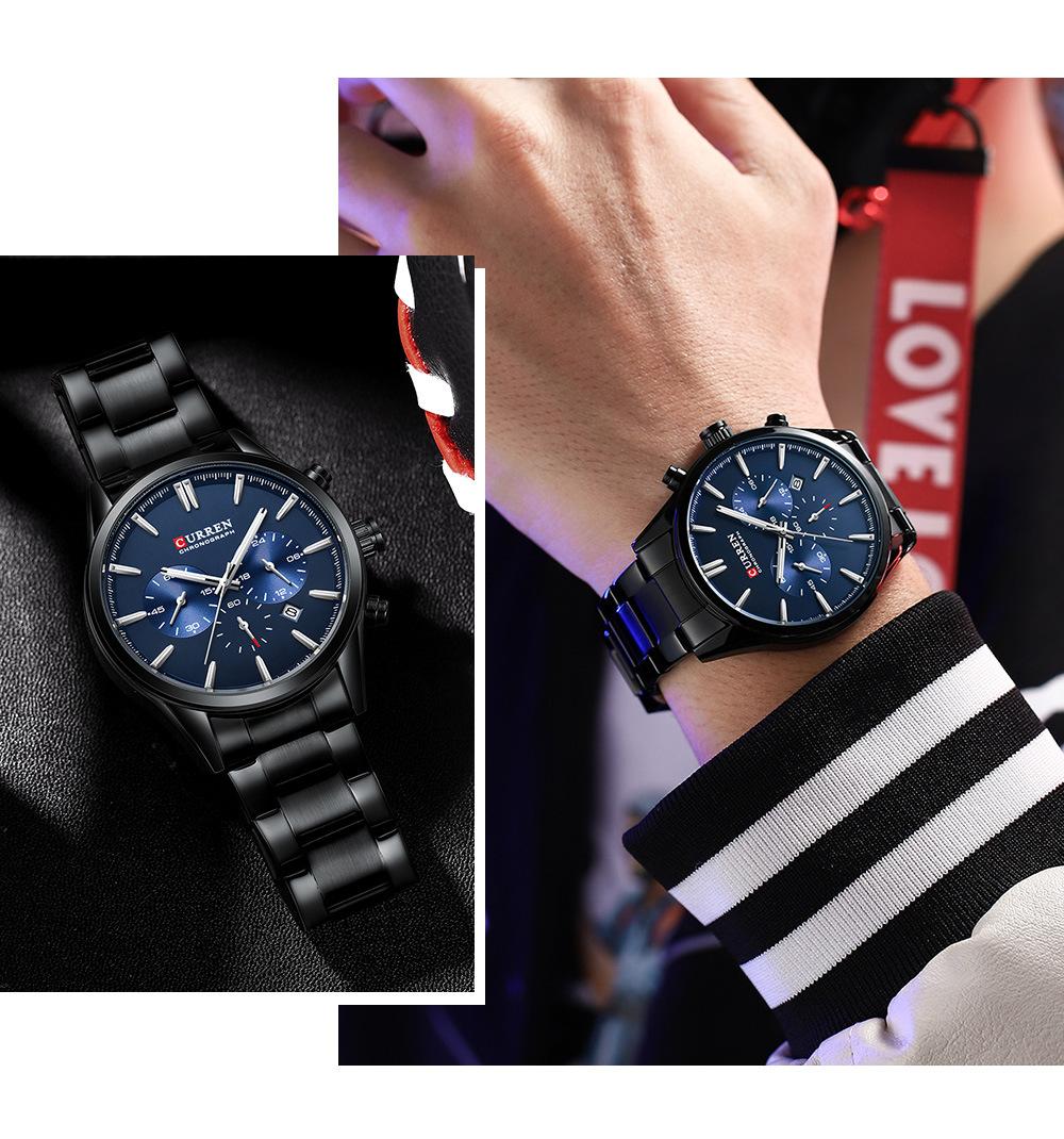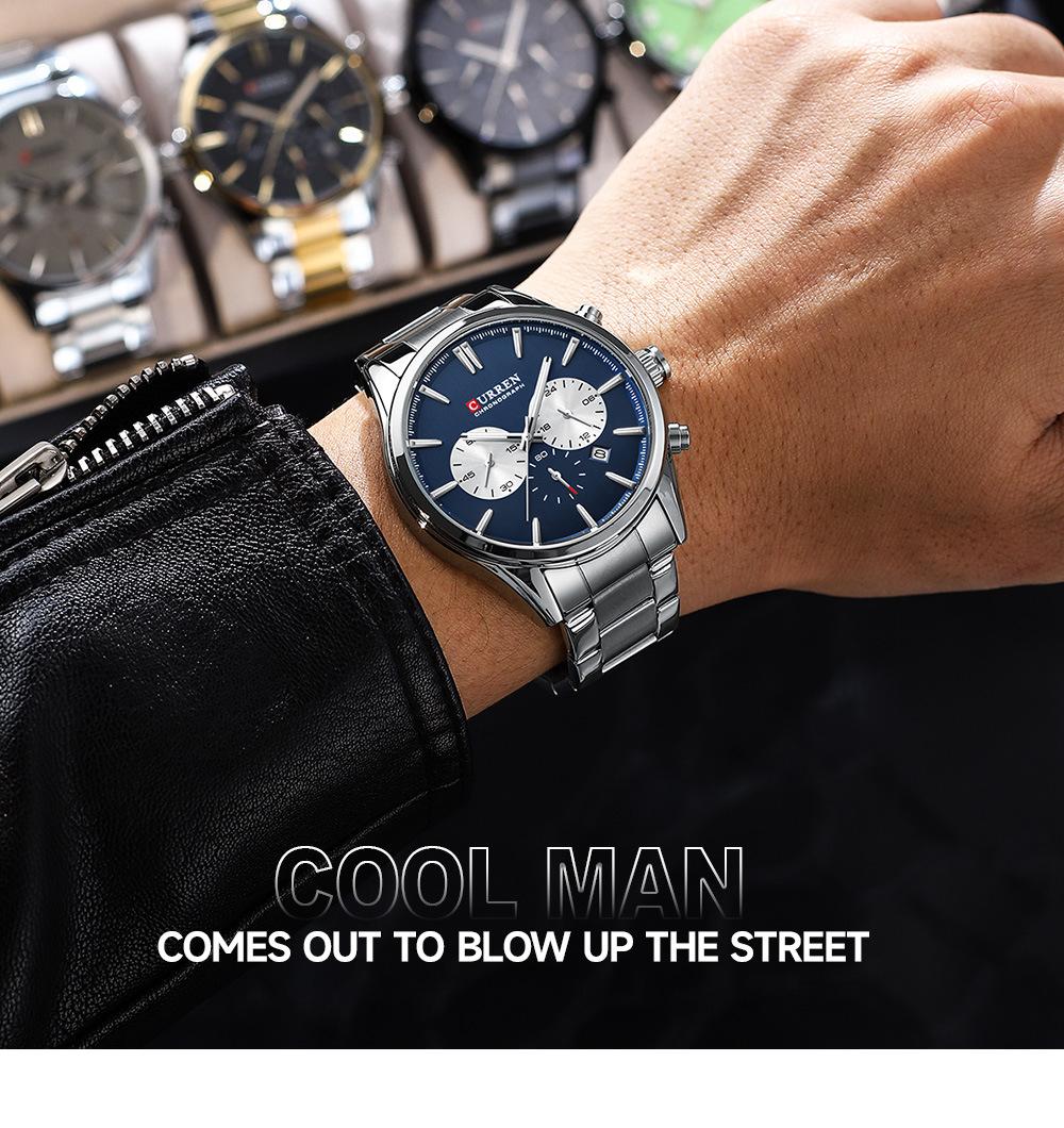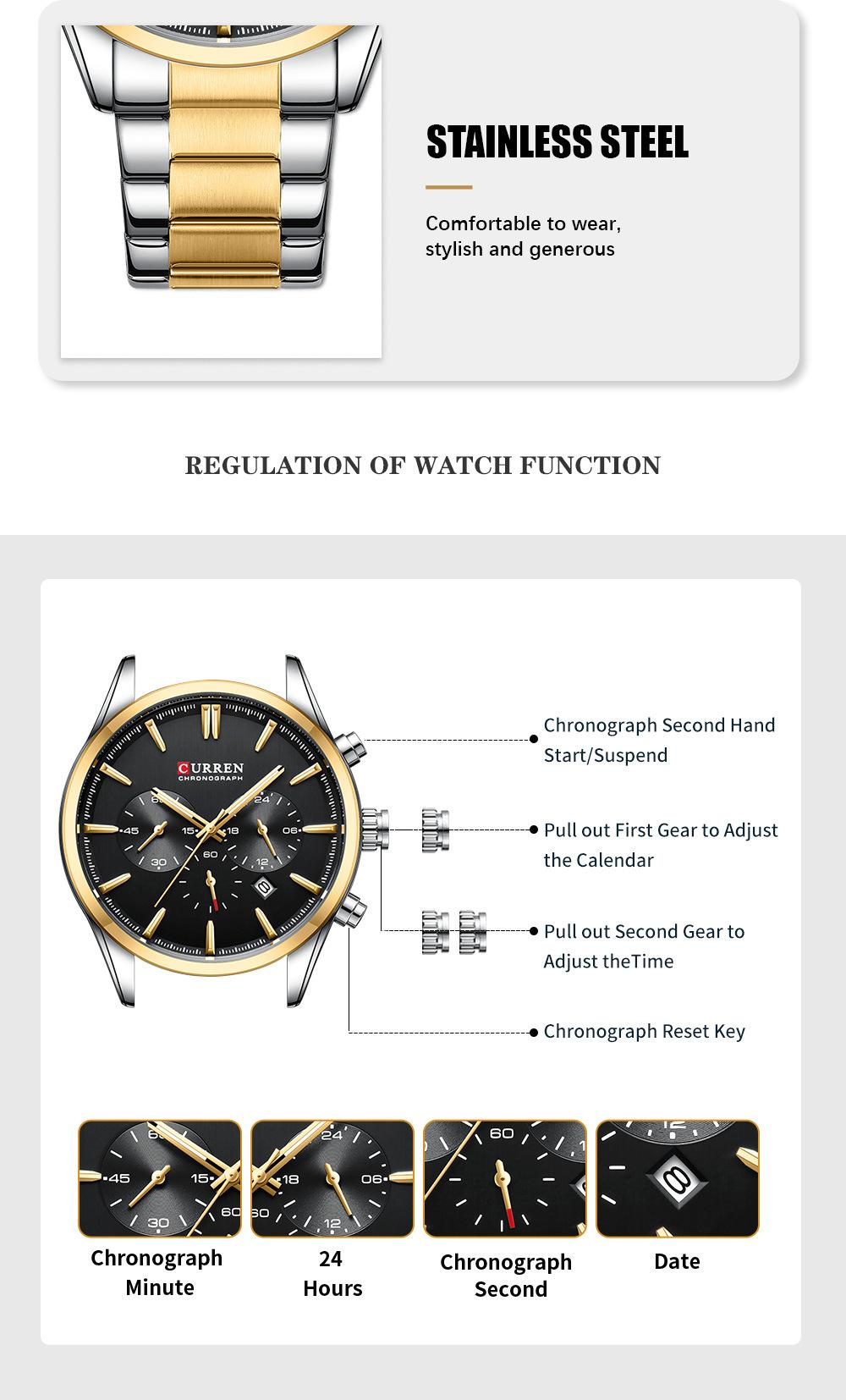 CURREN Carrien 8446 Reloj de Negocios para Hombre Cronógrafo de Seis Agujas Correa de Acero Reloj de Cuarzo Reloj de Moda Simple