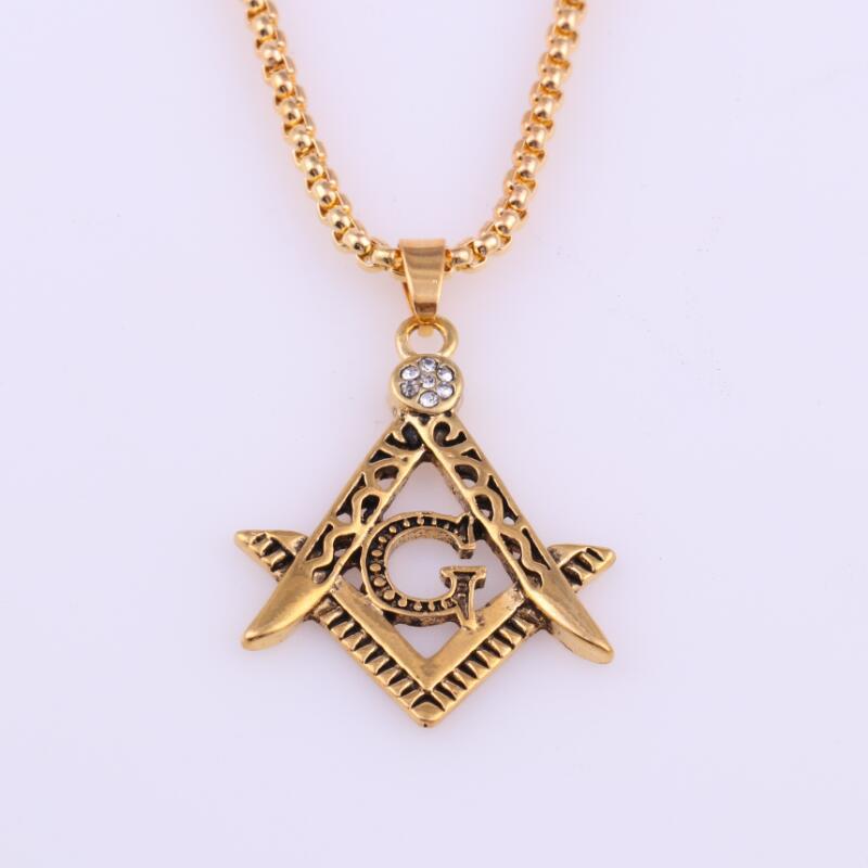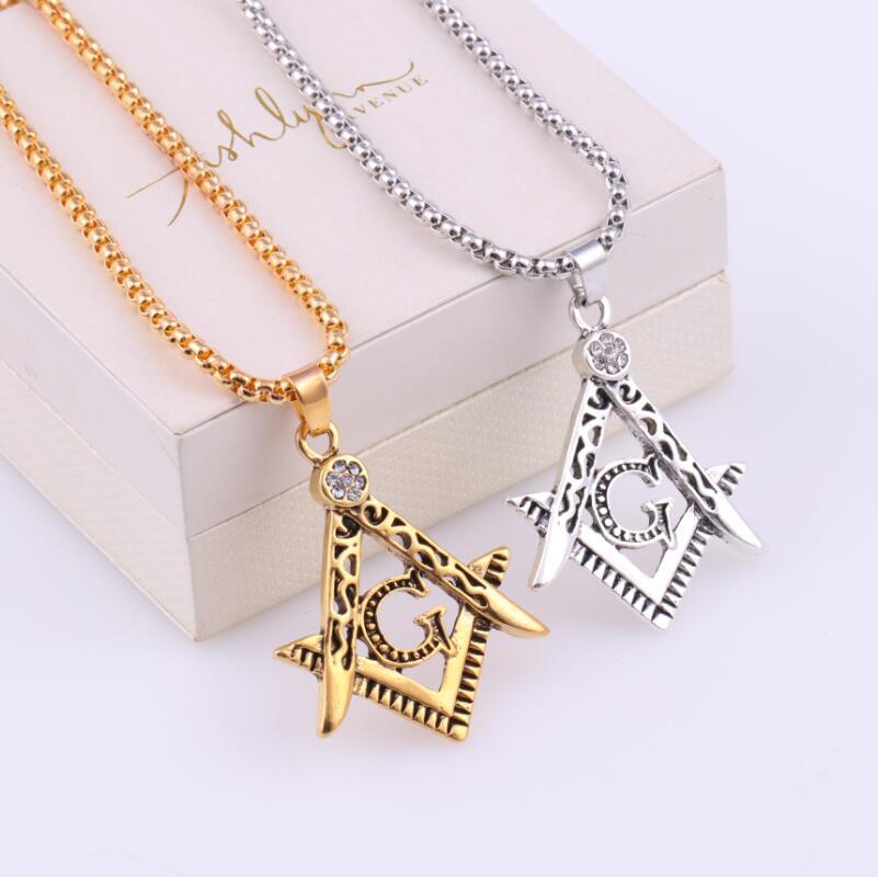 Venta caliente transfronteriza, colgante AG de estilo europeo y americano con diseño de hip hop para hombre, collar de cadena larga estilo retro masónico al por mayor