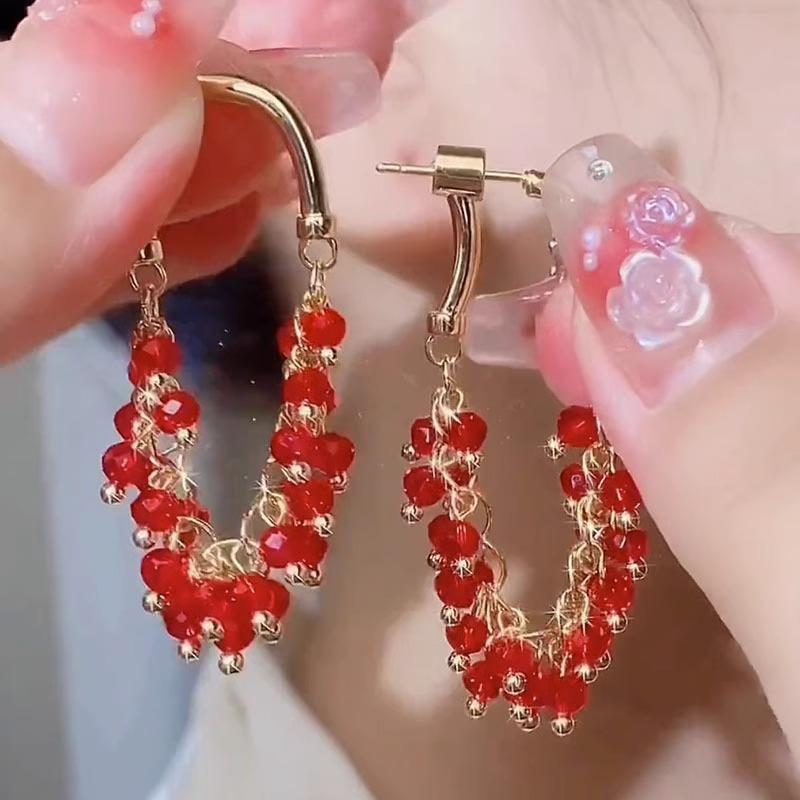 Compra Pendientes de estilo étnico retro de cristal rojo con diseño de industria pesada, diseño único, personalidad exagerada, pendientes de temperamento de lujo ligero. al por mayor en Joom.pro