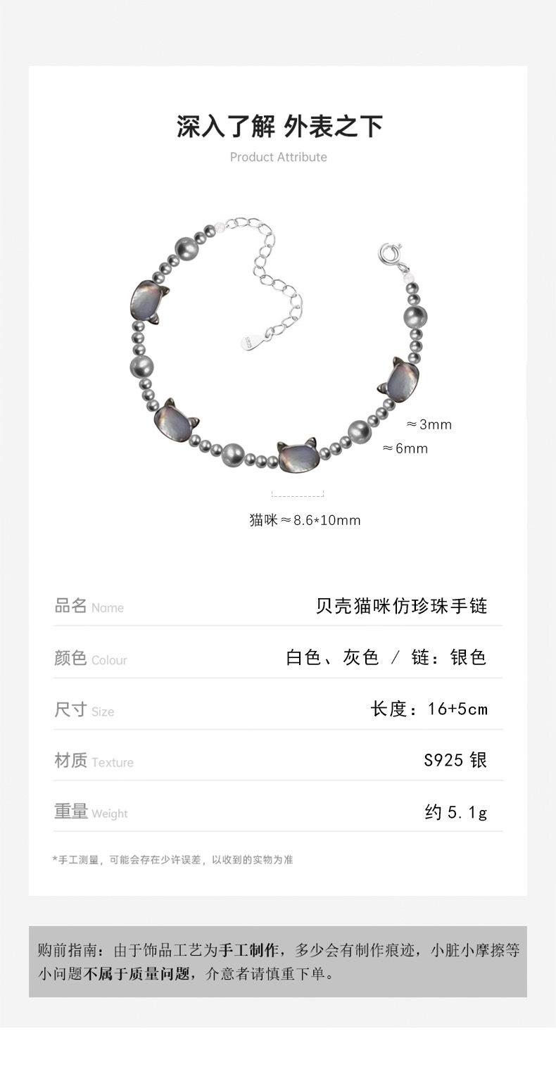 Shell cat bracelet-White, Shell cat bracelet-Gray