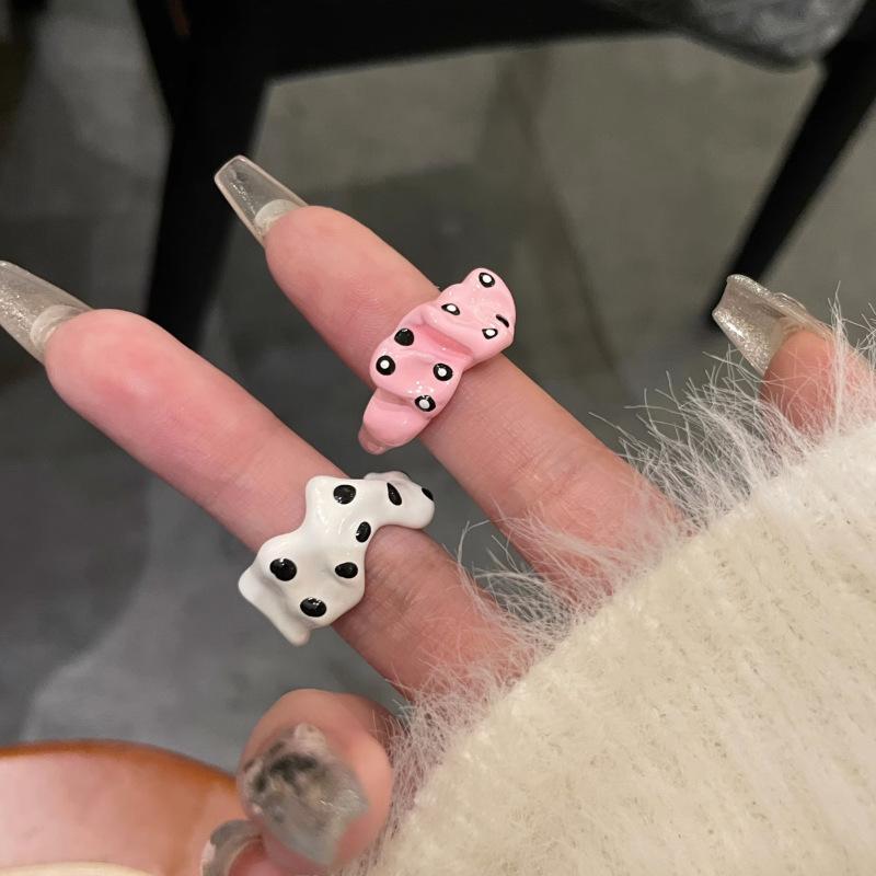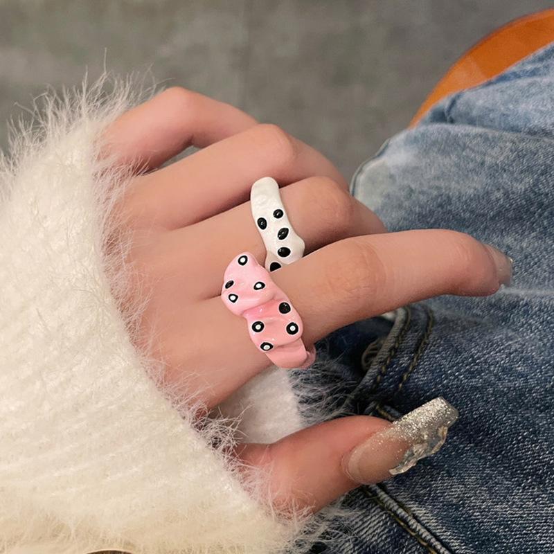 Anillo de dedo de estilo dulce, lindo, color irregular, único, esmalte hecho a mano, anillo de esmalte, nuevo 2023