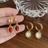 Pendientes coreanos de piedra de ojo de gato s925, accesorios de joyería de aleación, diseño chapado que conserva el color, temperamento de alto sentido.