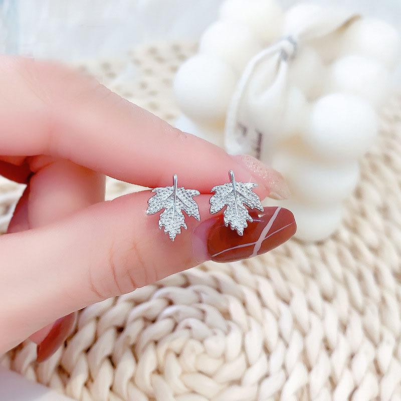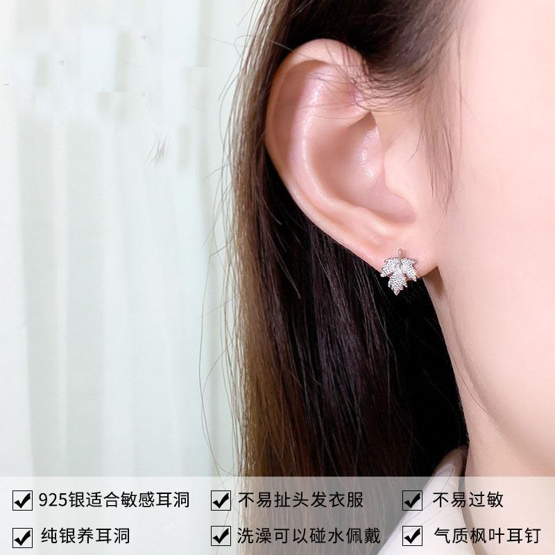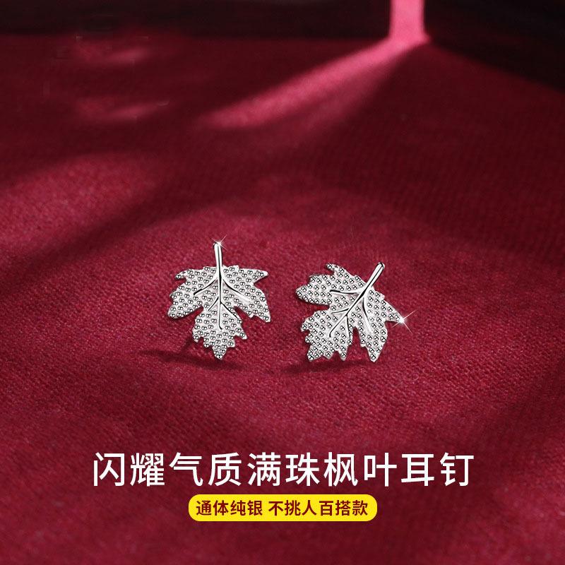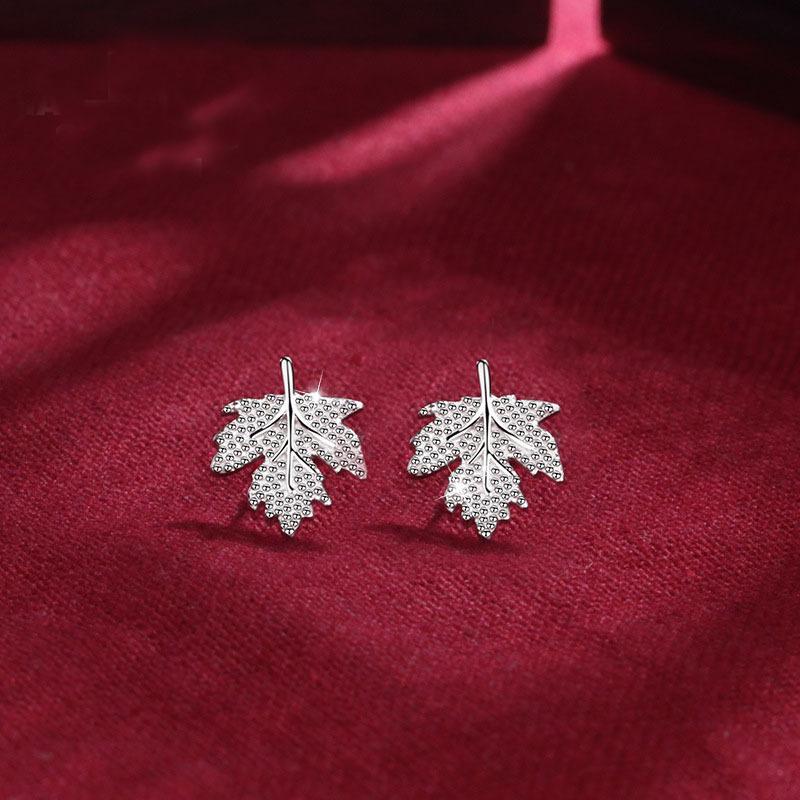 Pendientes de hoja de arce en plata de ley 925, elegantes y modernos para mujer, 2023.