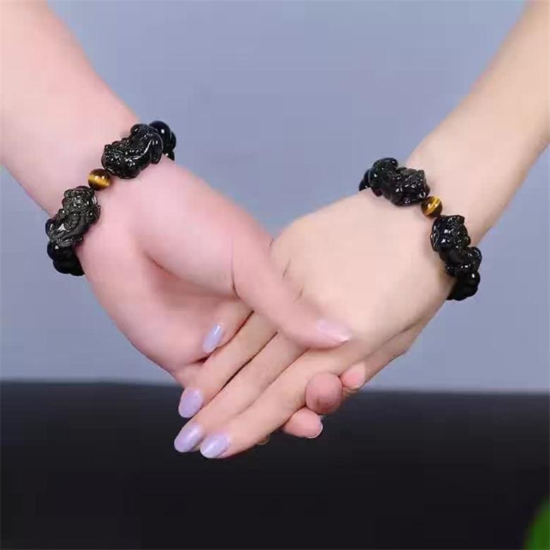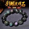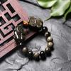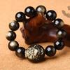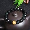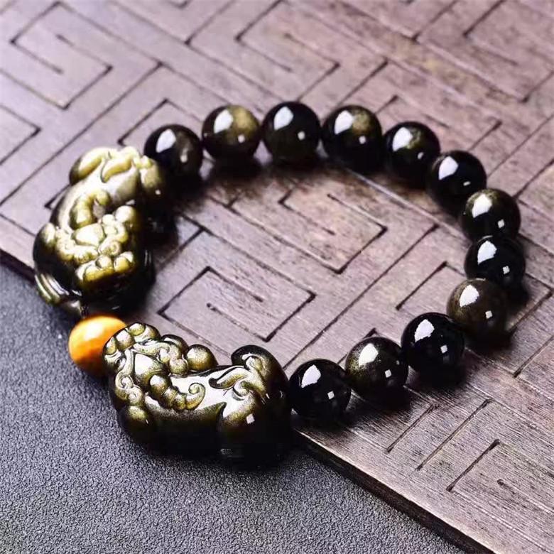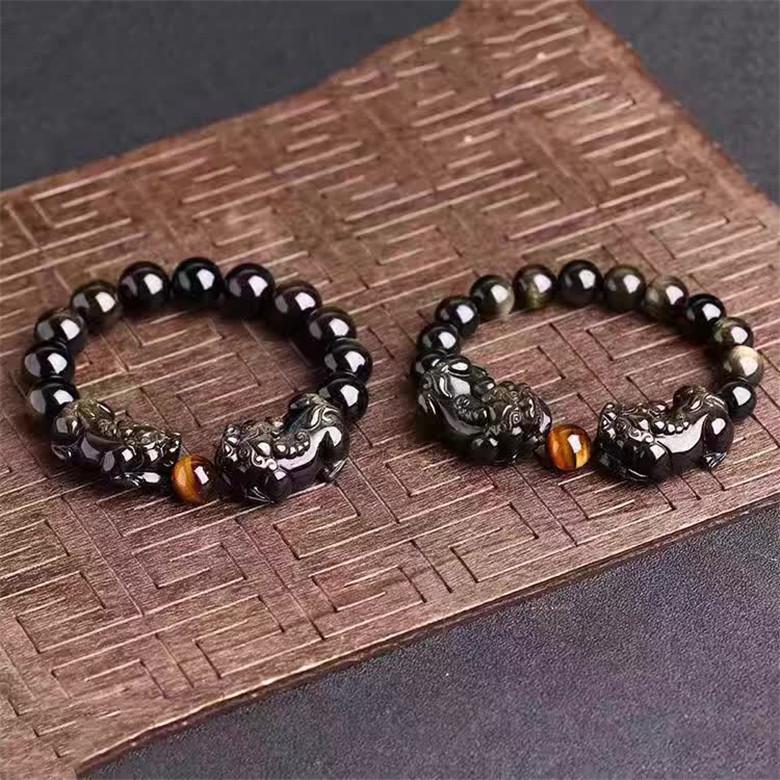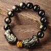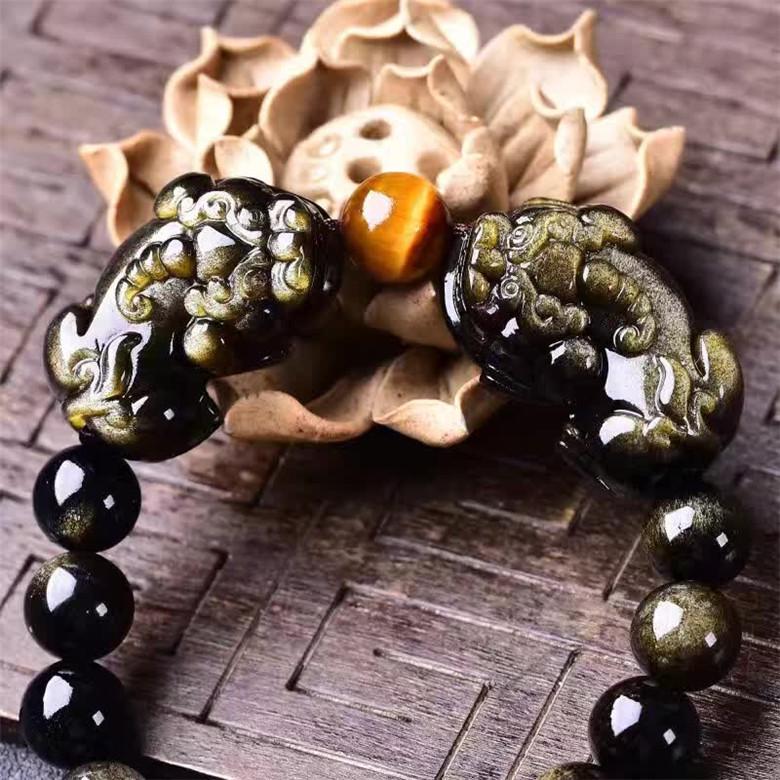 Pulsera doble de obsidiana dorada natural para hombres y mujeres valientes con ojo de tigre amarillo, piedra negra, cuero, Hugh cristal al por mayor