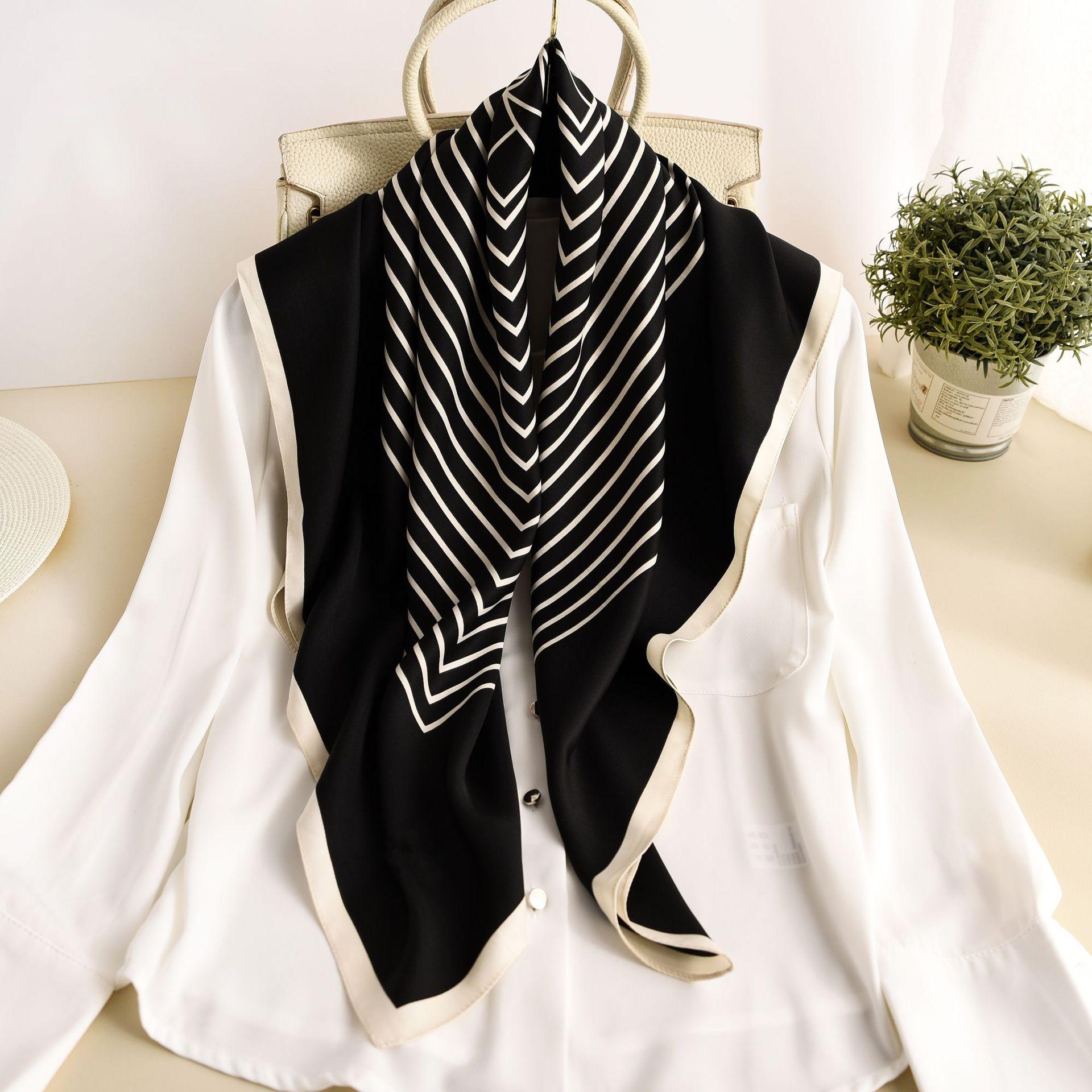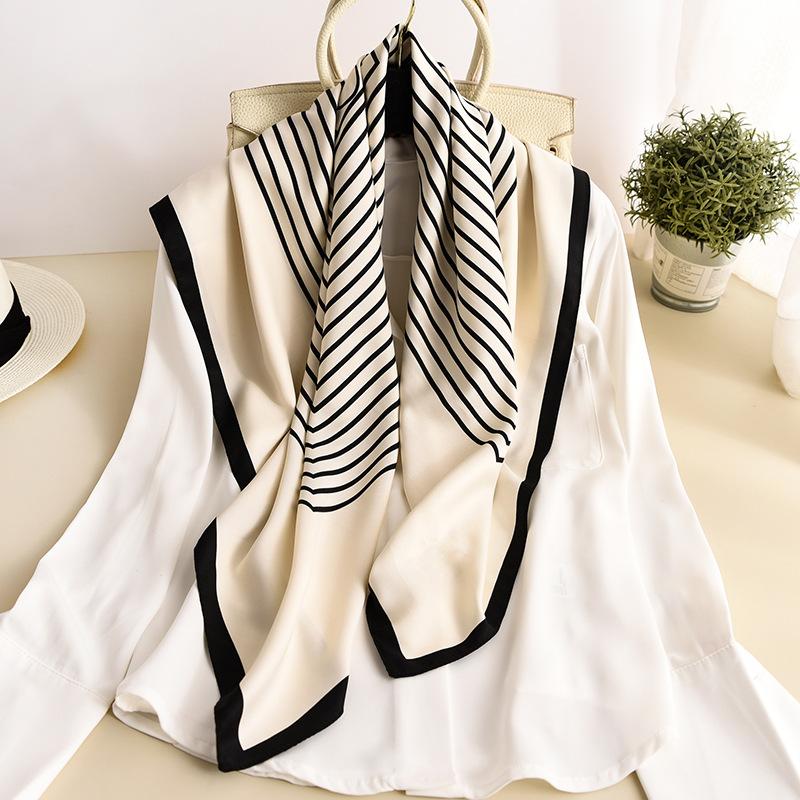 | Bufanda de seda sintética nueva de 2022, larga, de satén y seda, para vacaciones, con protector solar, venta al por mayor |