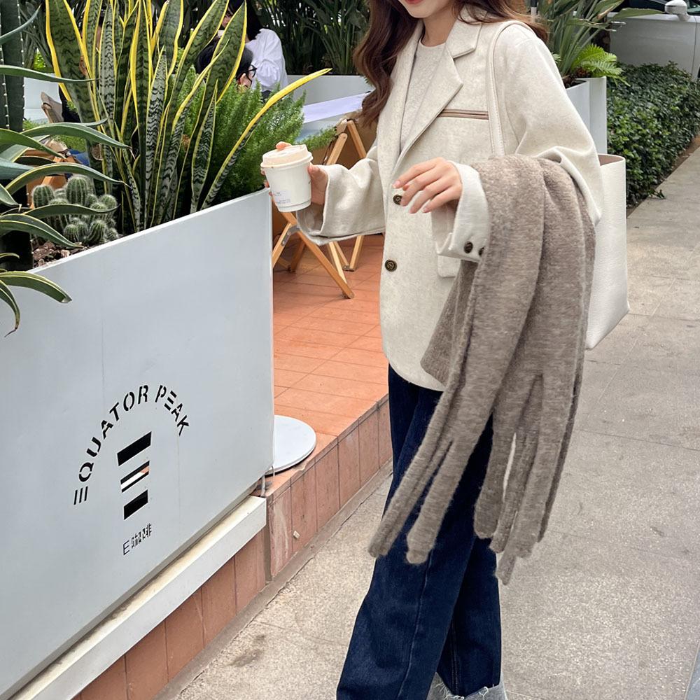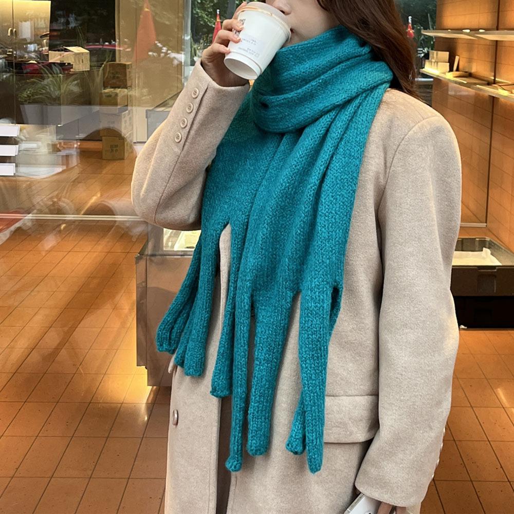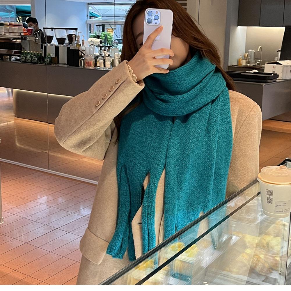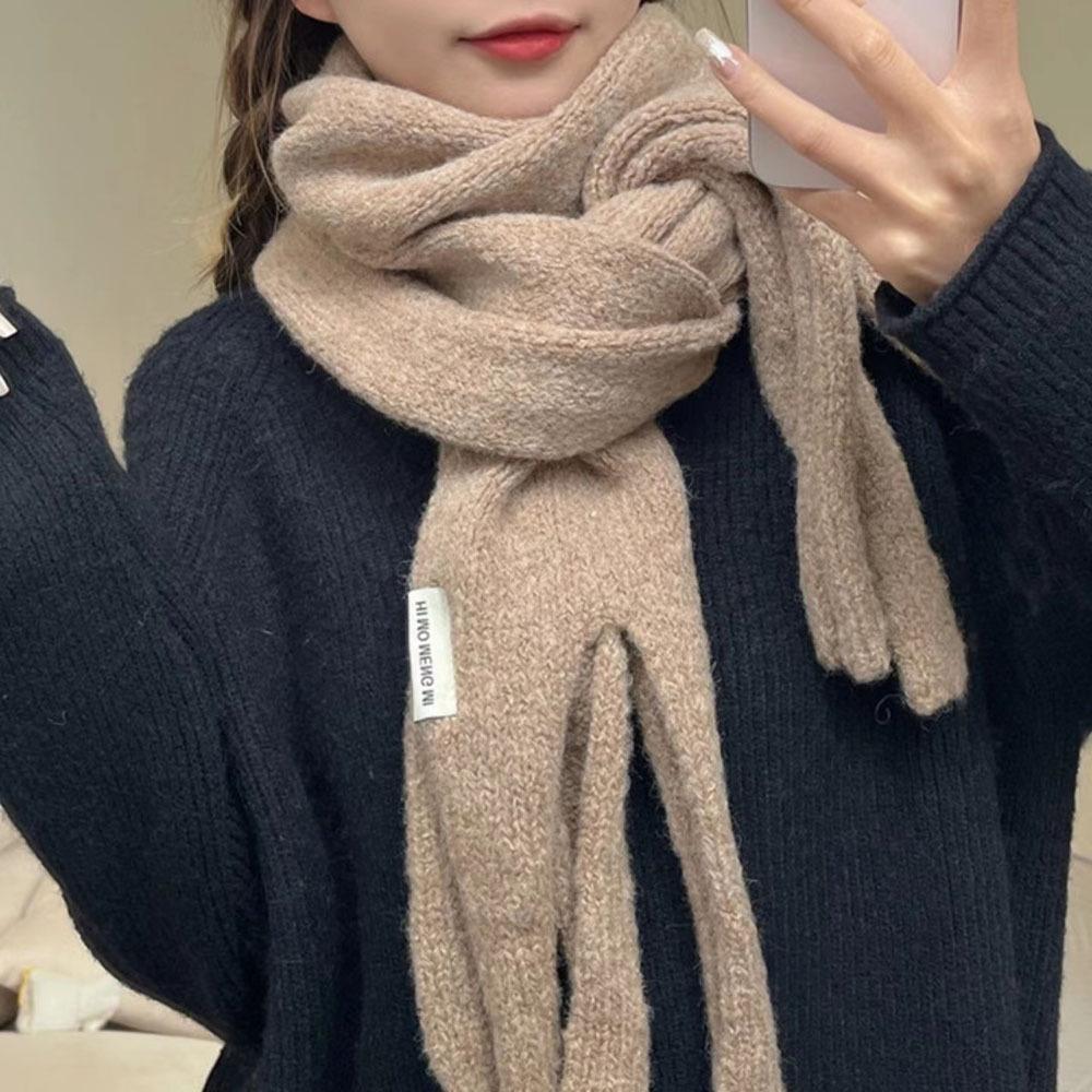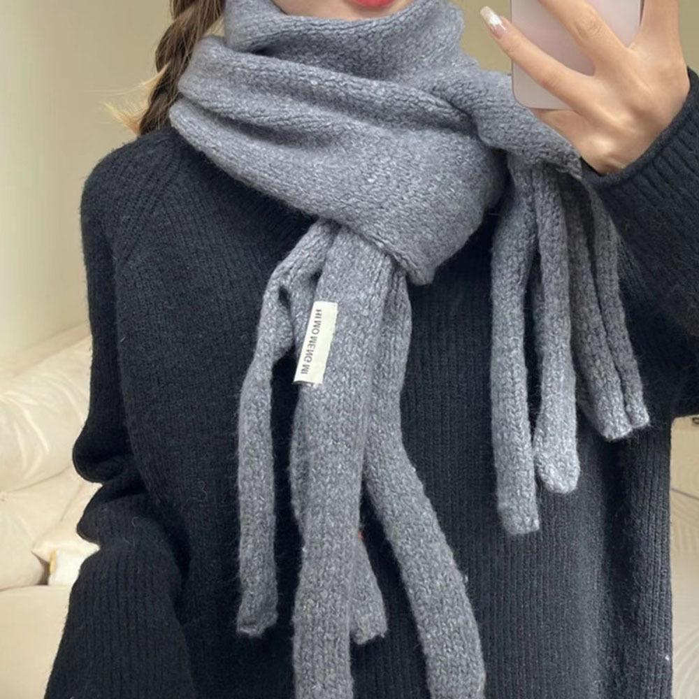 Bufanda Chal de Borla de Cola de Caballo de Lana de Alta Calidad Invierno Gruesa Cálida para Mujer Color Sólido Estilo Perezoso Bufanda para Pareja Chal