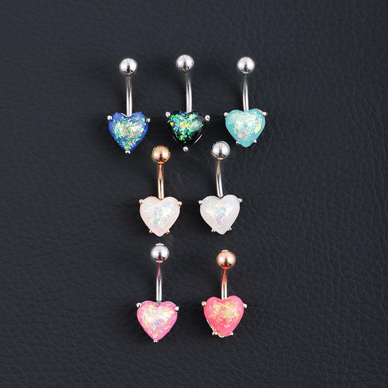 Venta caliente transfronteriza europea y americana, anillo de ombligo de imitación de ópalo de acero inoxidable, joyería para piercing de ombligo, nuevos productos populares