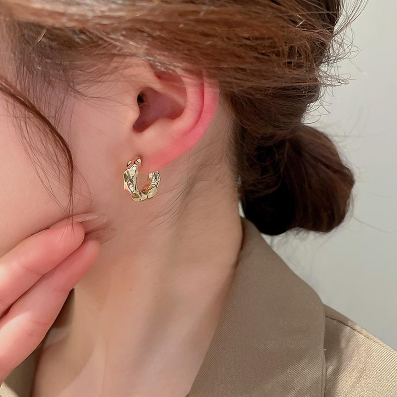 Compra Aretes de Aro Metálicos Plisados de Estilo Minimalista con un Diseño Único, Baño de Oro Real, Aretes Elegantes Simples y Versátiles para Mujeres al por mayor en Joom.pro
