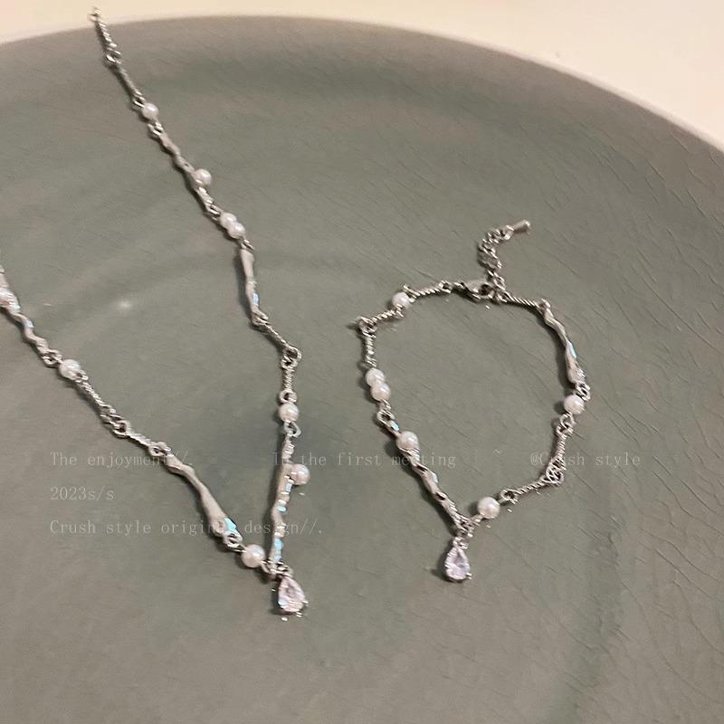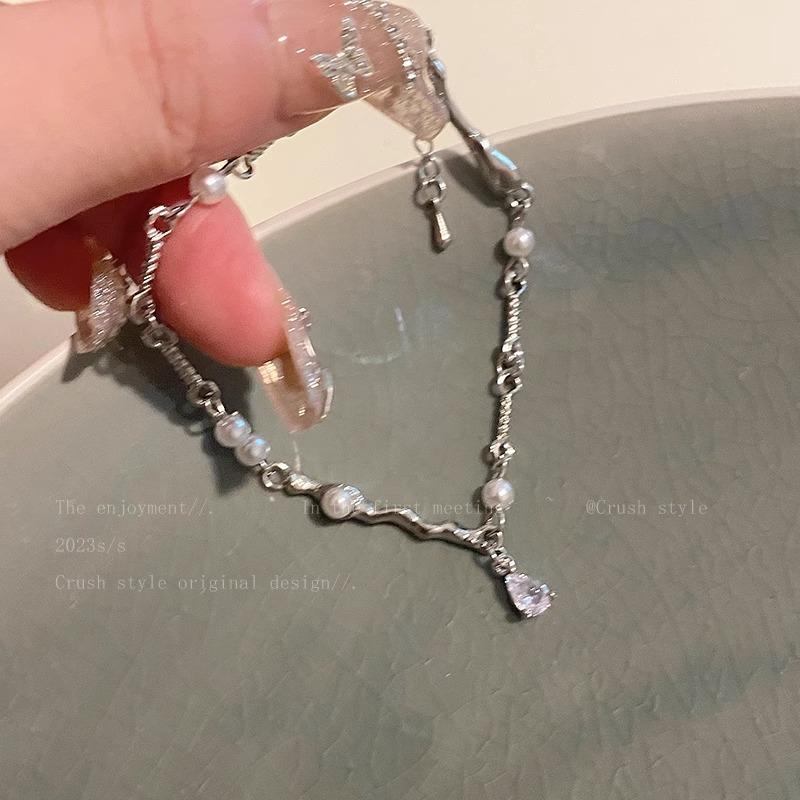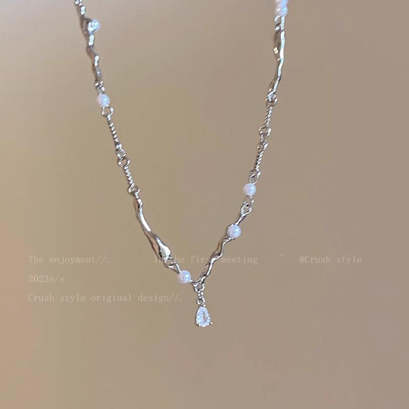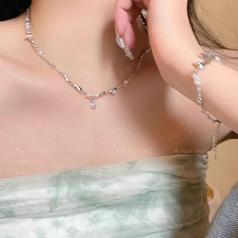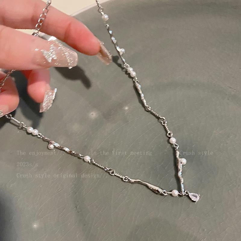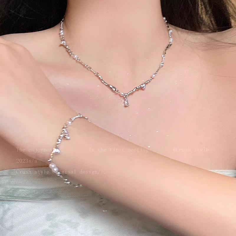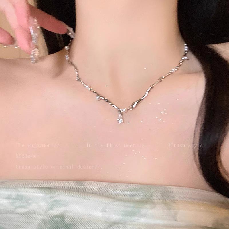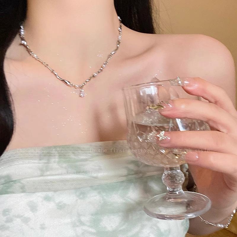 Collar de acero de titanio con perlas para chica caliente pura, hip hop para mujer, estilo frío, cadena de clavícula de alta gama, otoño, lujo ligero, collar para combinar con todo