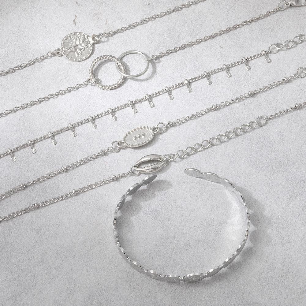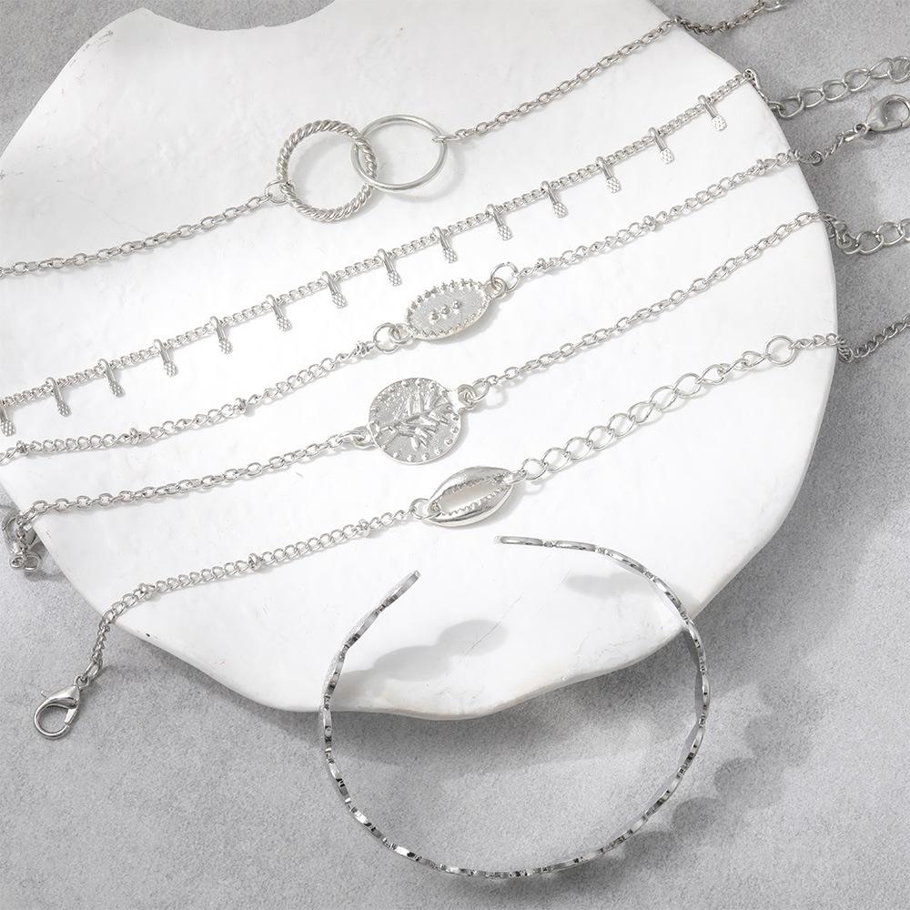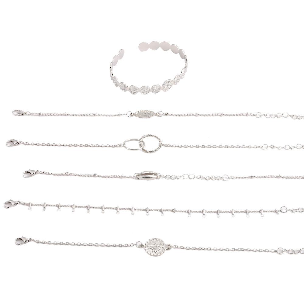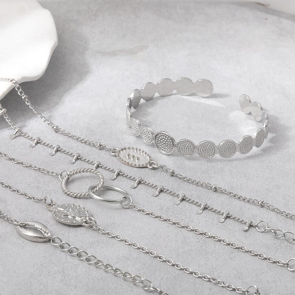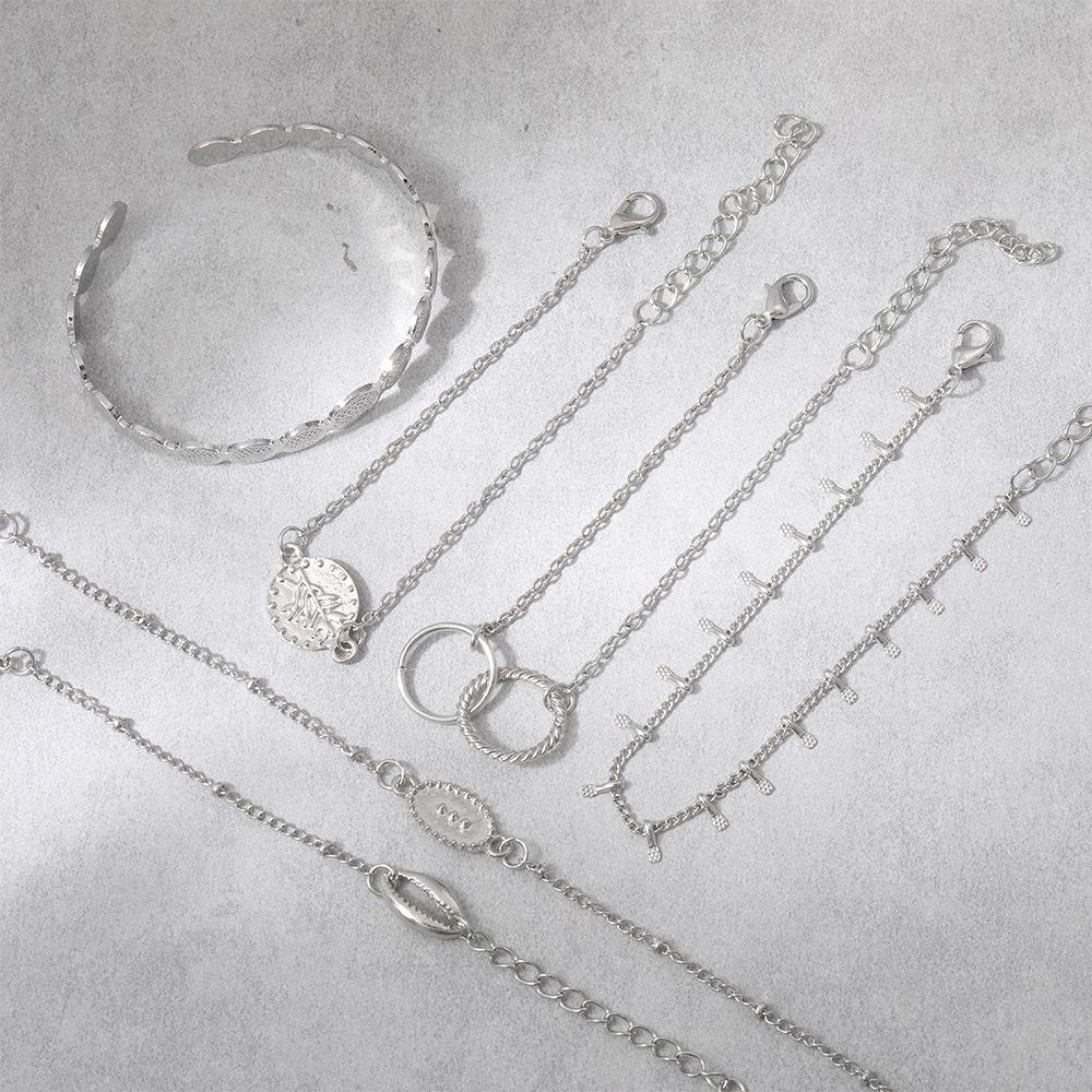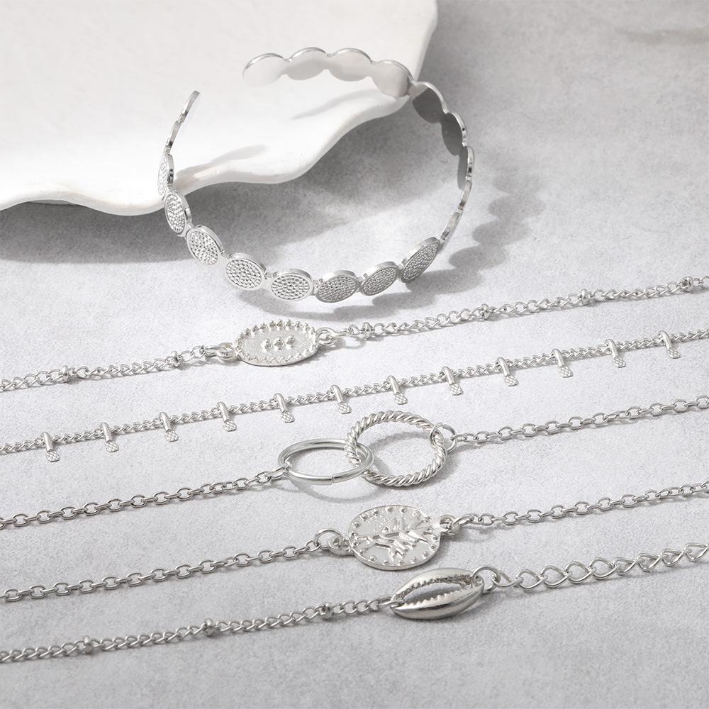 Pulsera combinada nueva europea y americana moda personalidad anillo de concha juego de 6 piezas pulsera ajustable pulsera abierta venta al por mayor