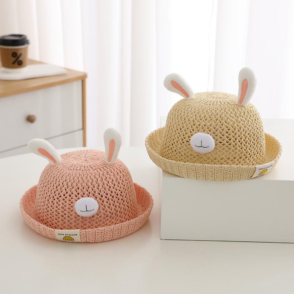 Sombrero para niños, sombrero de verano para el sol, sombrero de paja de pescador con dibujos de conejo coreano, sombrero de playa transpirable para exteriores, sombrero protector solar para bebés.