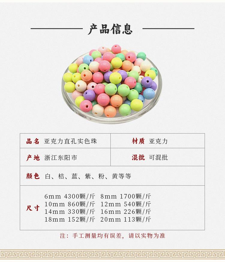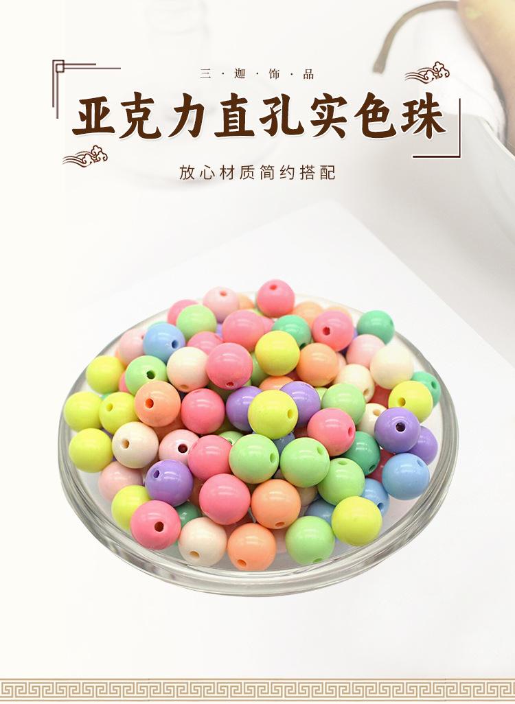Cuentas redondas de plástico, cuentas acrílicas de agujero recto, cuentas de color sólido, color macarrón, cuentas sueltas hechas a mano, joyería al por mayor