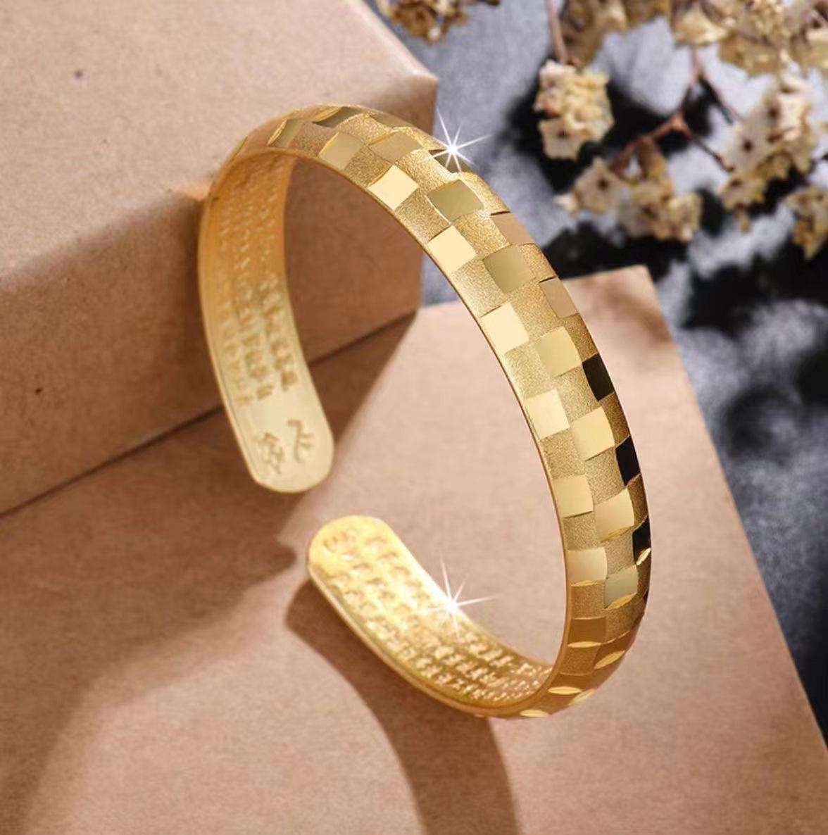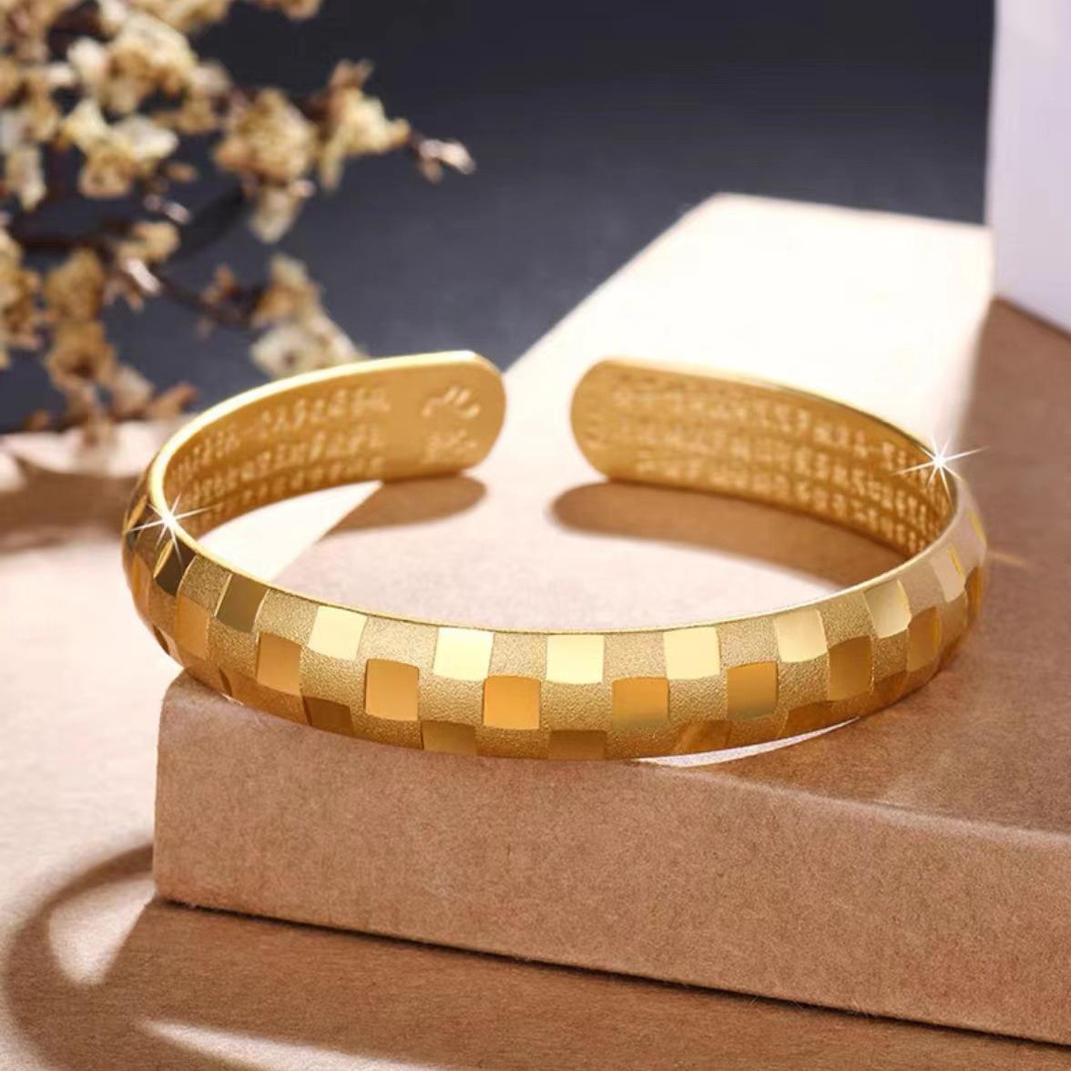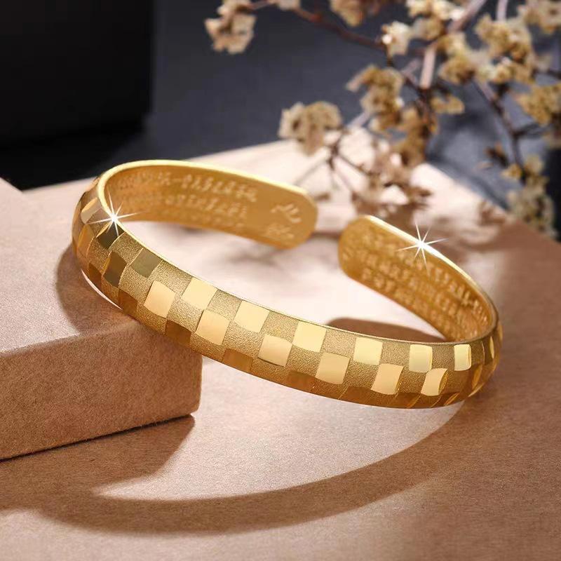 Compra Vietnam oro arena ley antigua Sutra del Corazón pulsera a cuadros retro para mujer cobre chapado en oro pulsera abierta suministro de puesto venta al por mayor al por mayor en Joom.pro