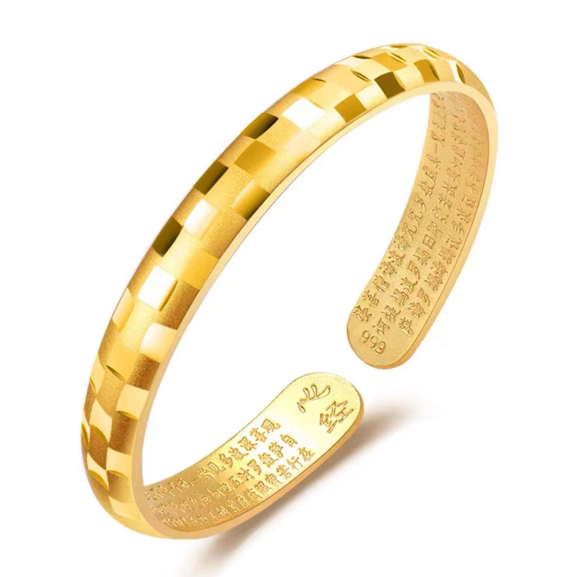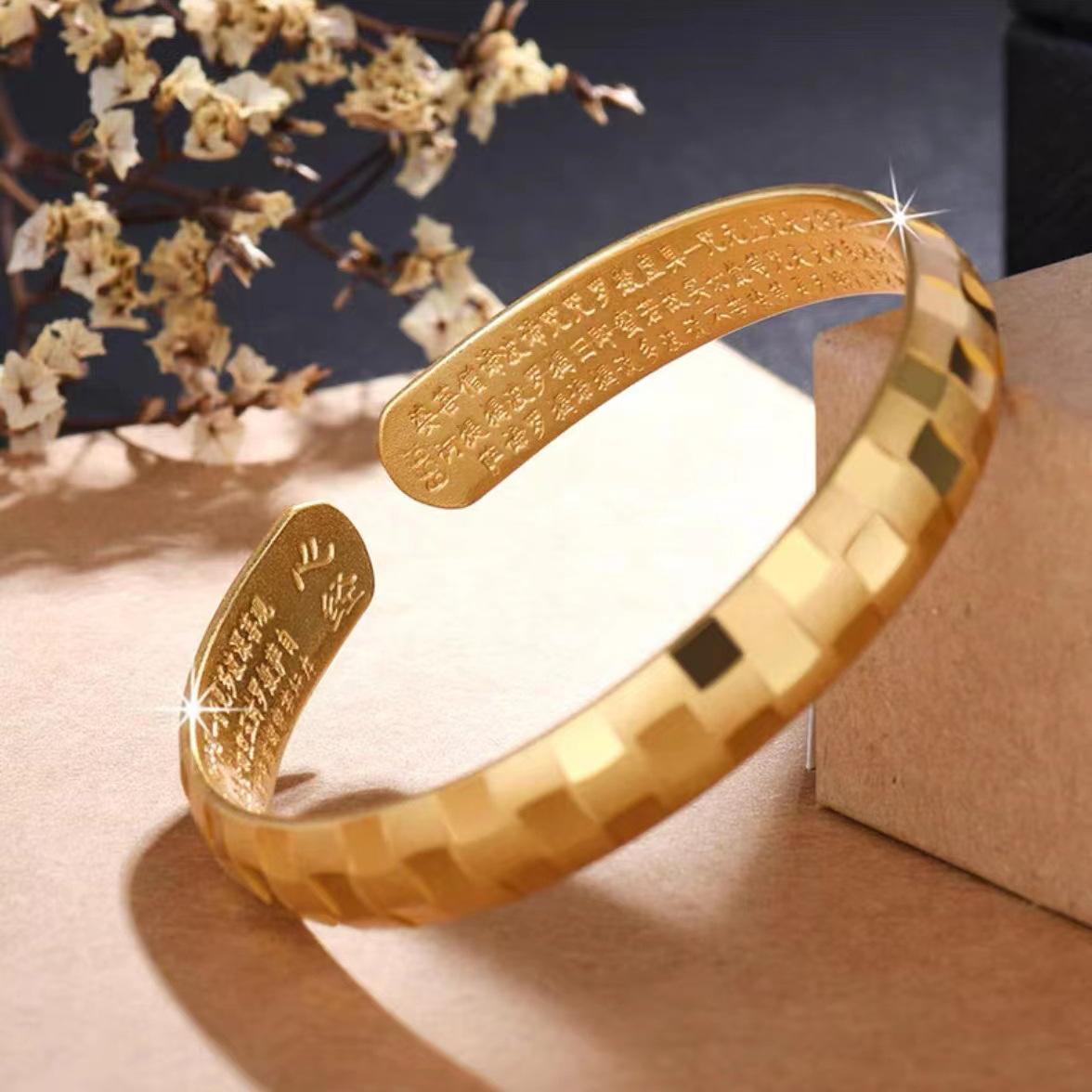 Vietnam oro arena ley antigua Sutra del Corazón pulsera a cuadros retro para mujer cobre chapado en oro pulsera abierta suministro de puesto venta al por mayor