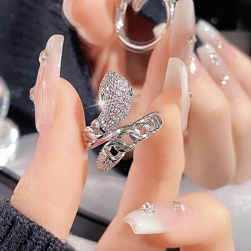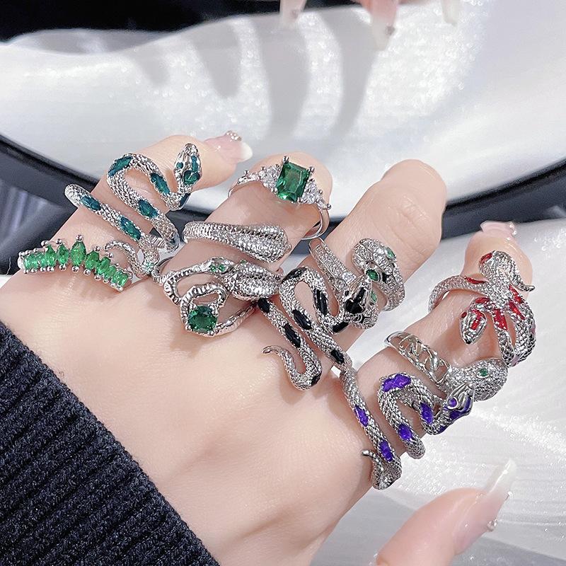 Compra Anillo Abierto con Forma de Serpiente de Zirconia Incrustada Diseño Nicho Elegante Estilo Retro Oscuro Ins Estilo Frío Anillo Versátil para Mujer al por mayor en Joom.pro