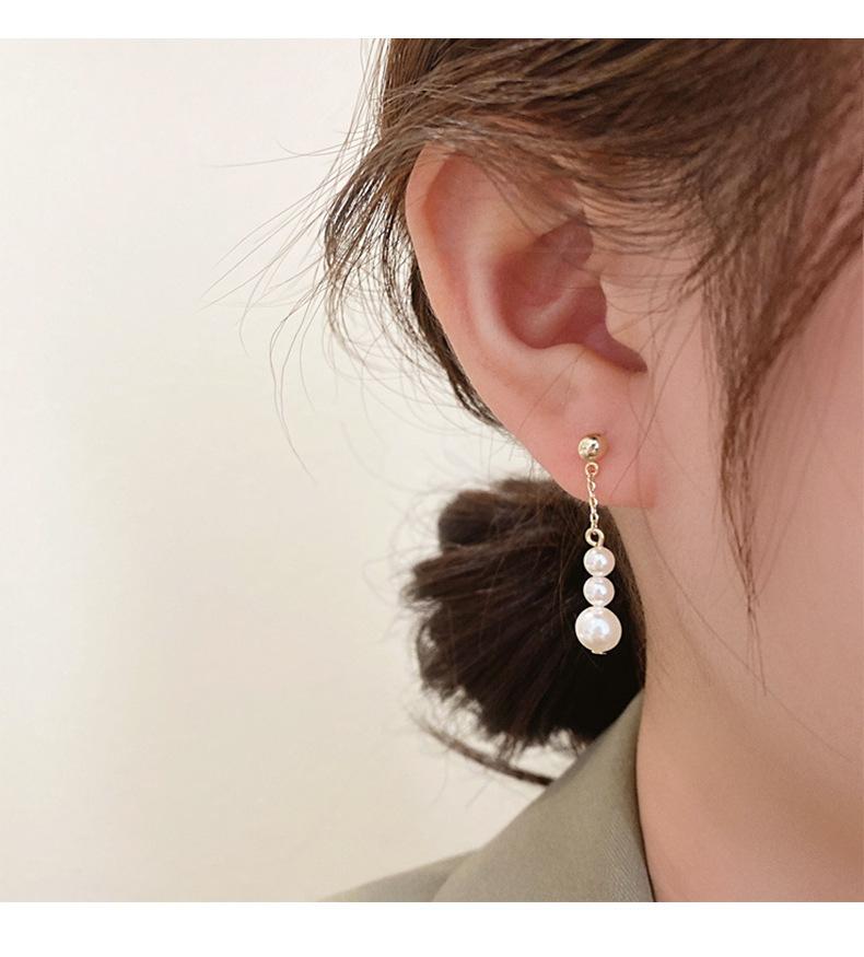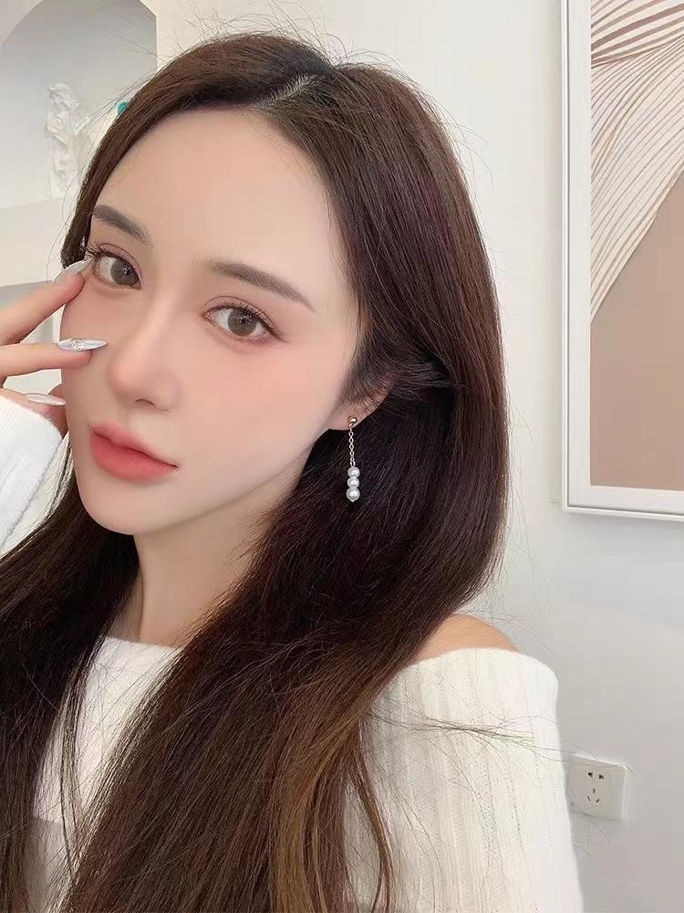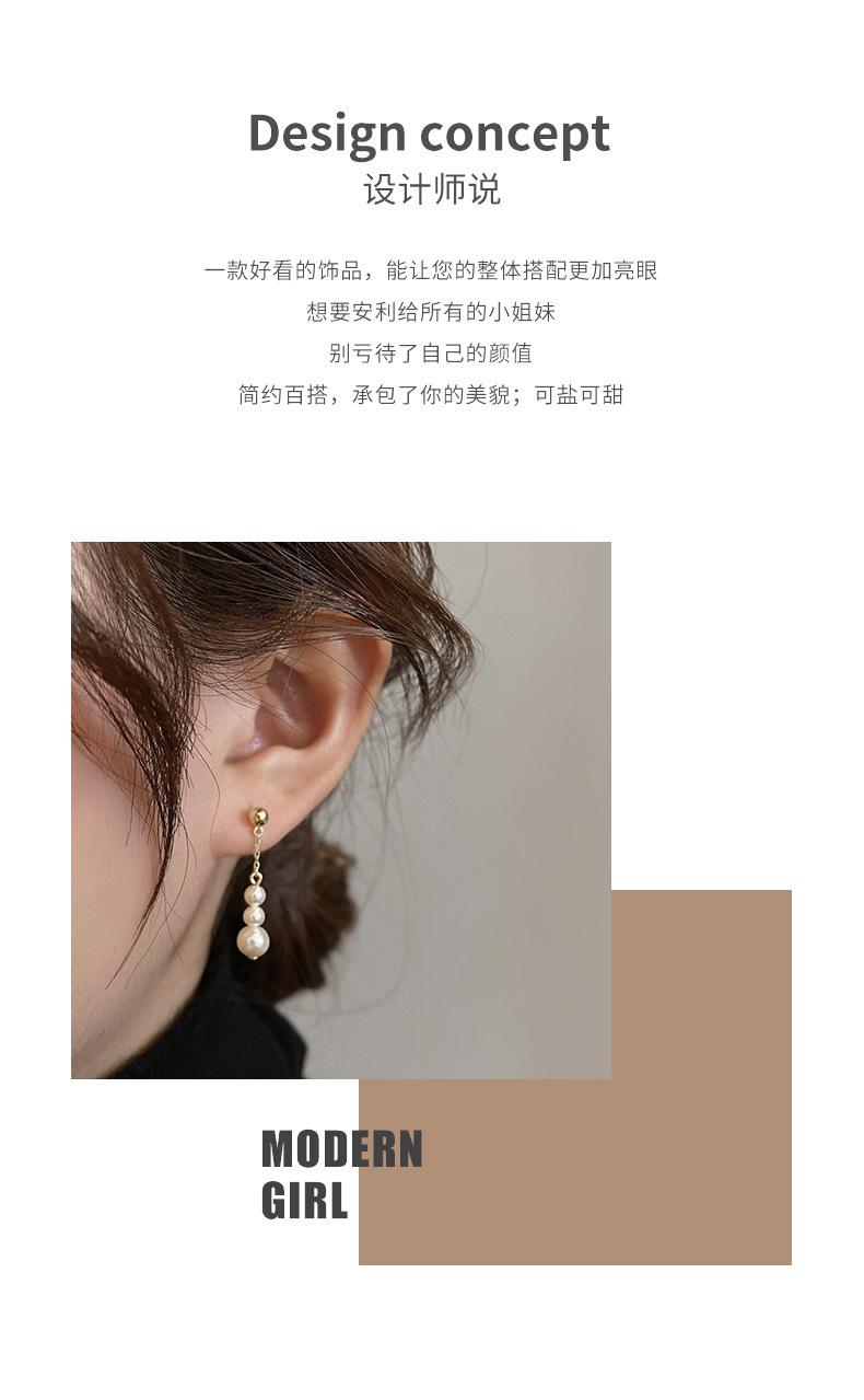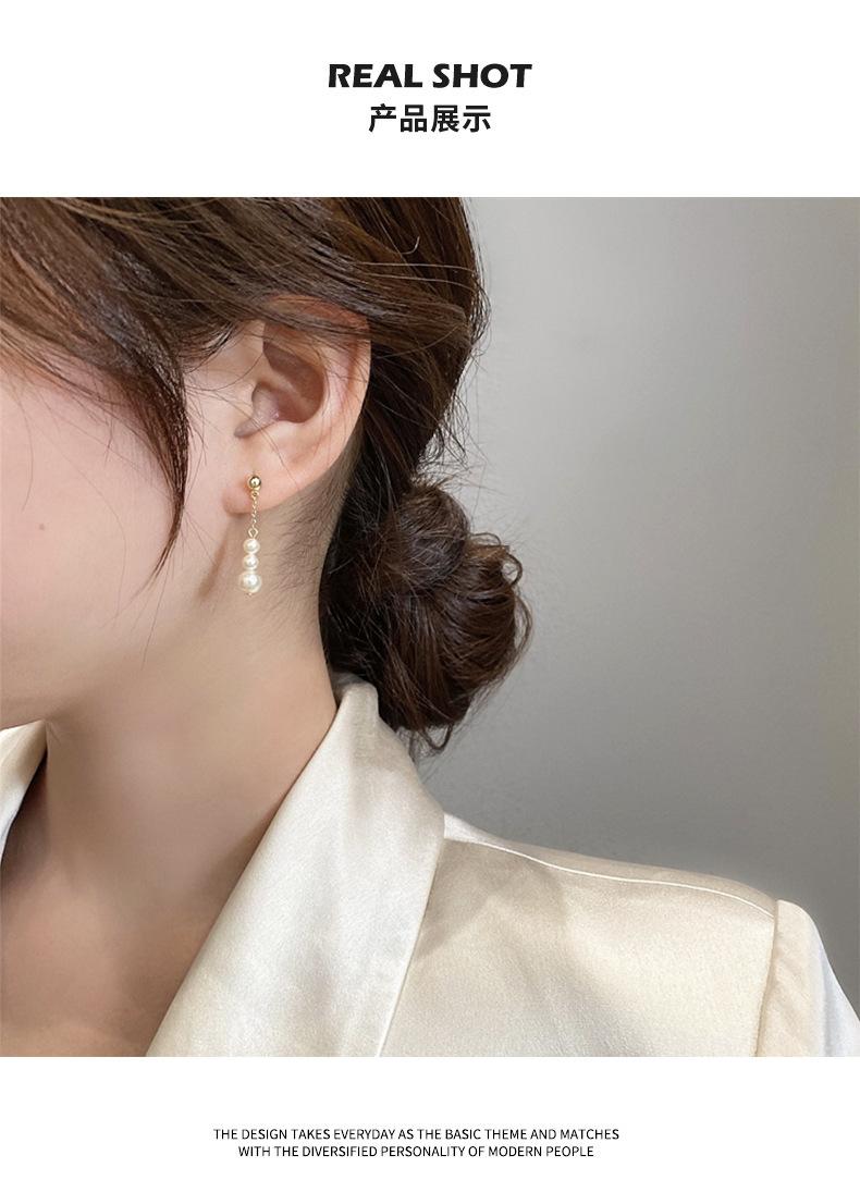 Pendientes colgantes de tres perlas estilo francés para mujer, verano 2023, nuevos pendientes de temperamento con diseño de lujo ligero y moderno.