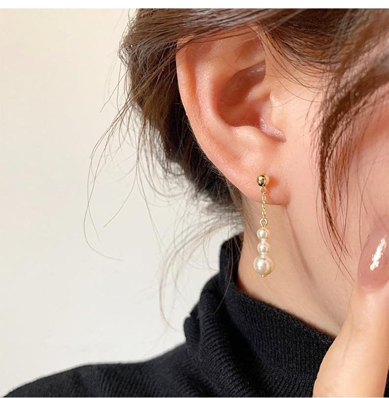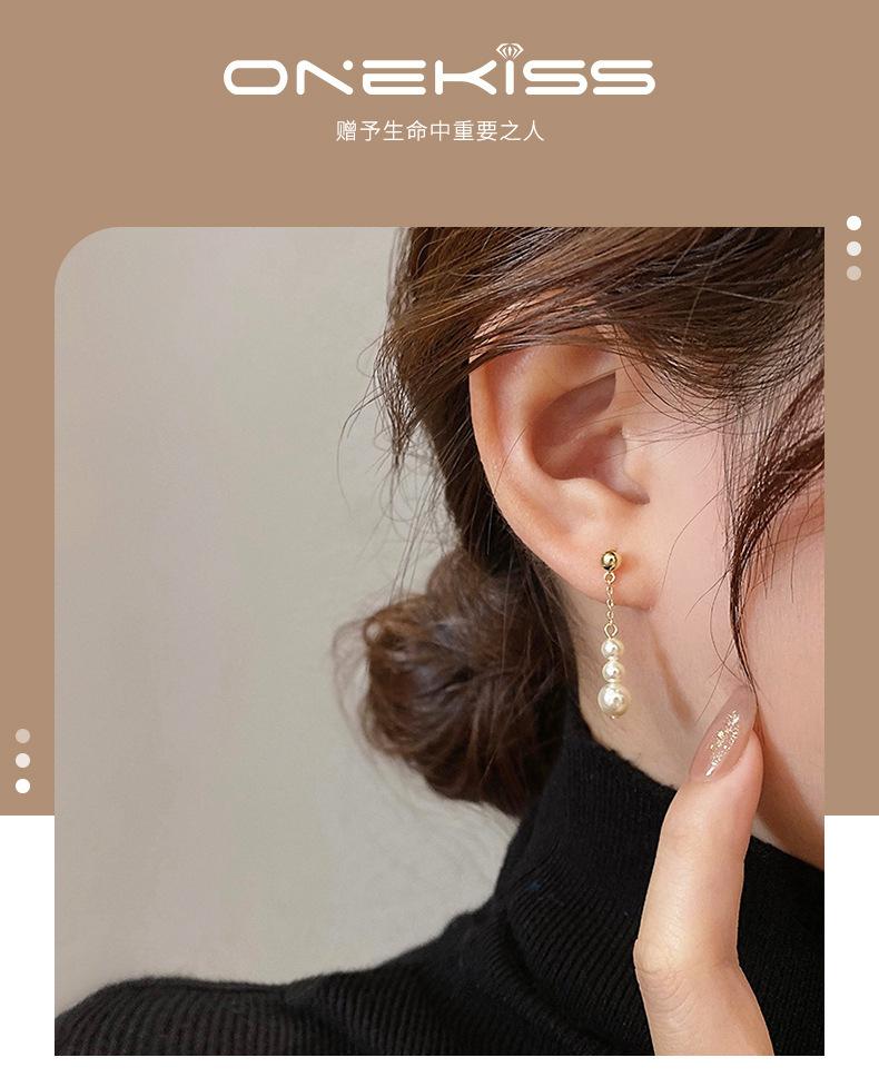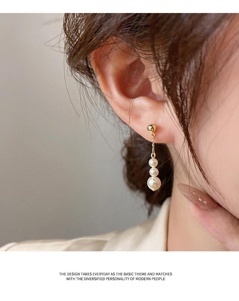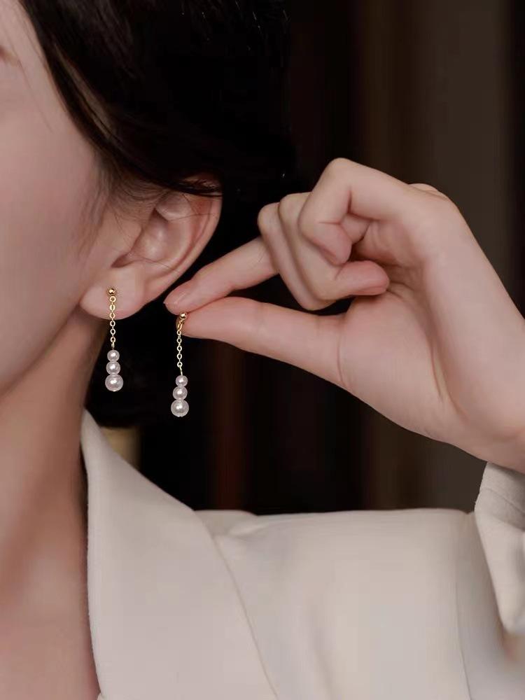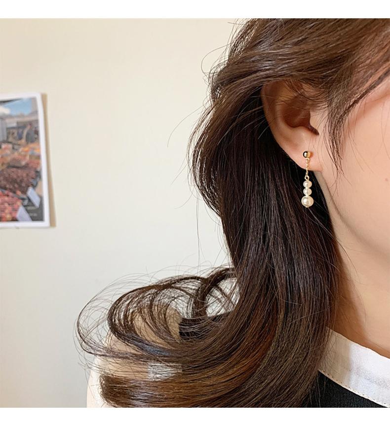 Pendientes colgantes de tres perlas estilo francés para mujer, verano 2023, nuevos pendientes de temperamento con diseño de lujo ligero y moderno.