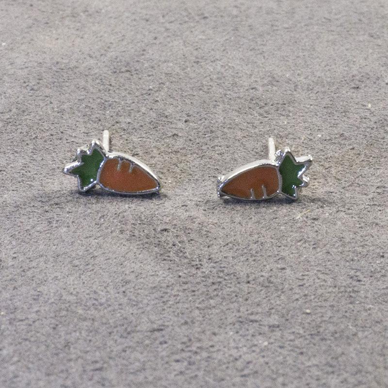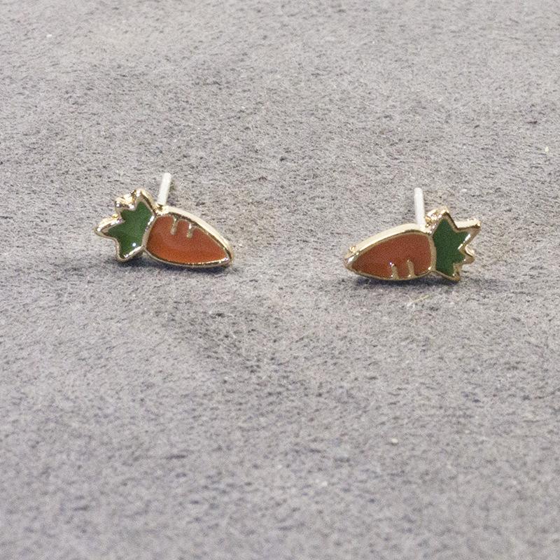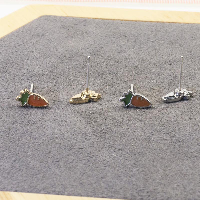 Aguja de Plata S925 Corea del Sur Lindo Arete de Zanahoria de Dibujos Animados Temperamento Simple Pequeño y Exquisito Arete Corazón de Niña