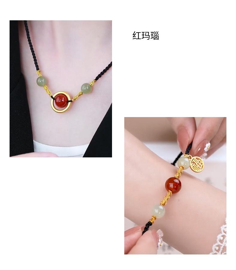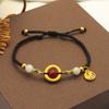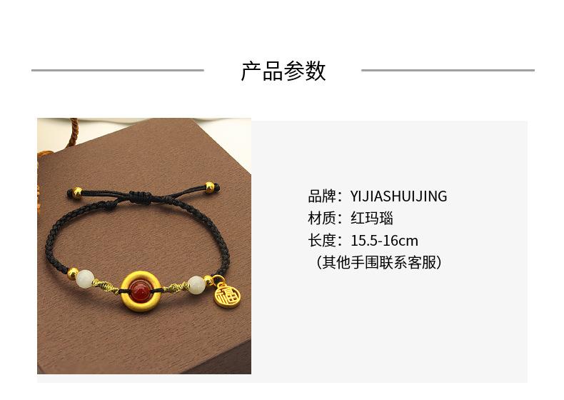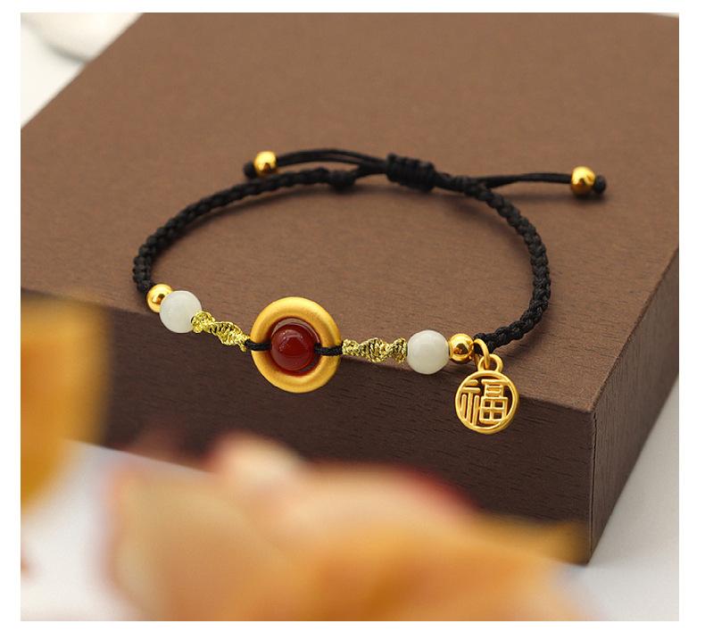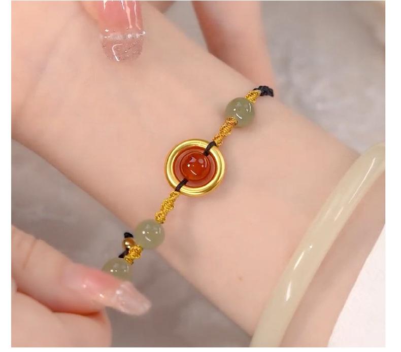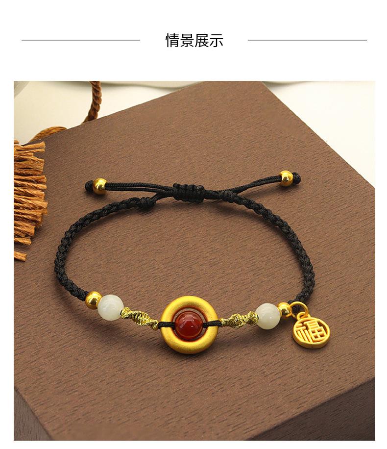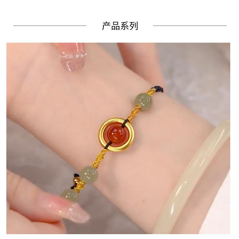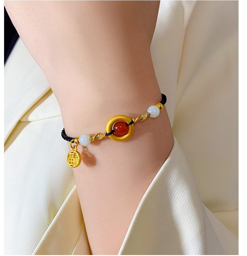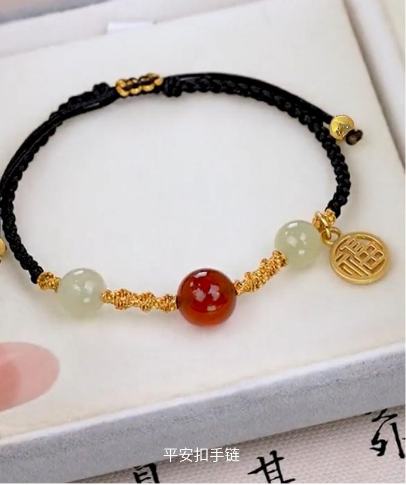 Pulsera Hebilla Ping An Femenina Ágata Roja Cuerda Tejida Tono Sacudido Mismo Estilo Pulsera Marca Fu Regalo Sencillo para Novia