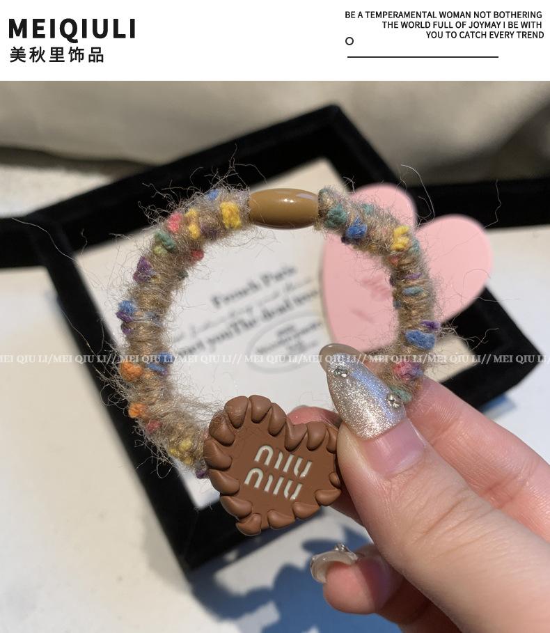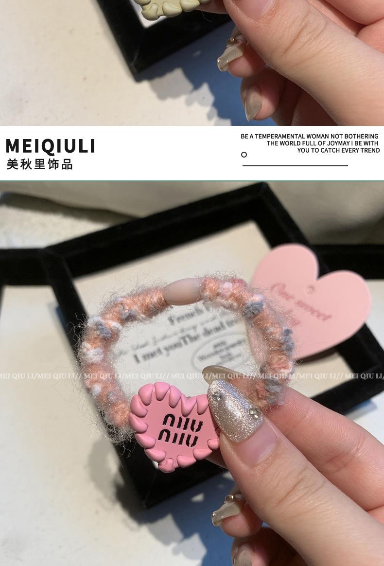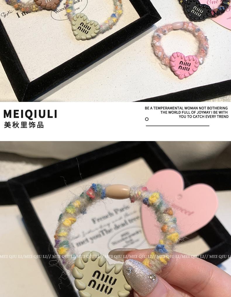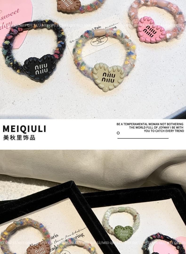 Estilo coreano nueva banda para el cabello de lana encantadora con letra MIU de metal Dulce niña coleta cuerda para el cabello bola cuerda para el cabello