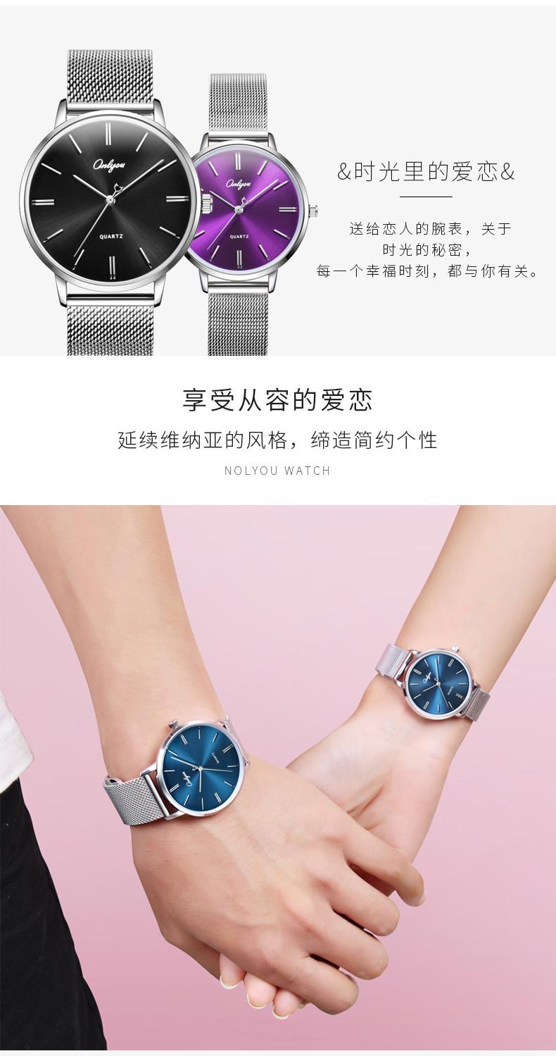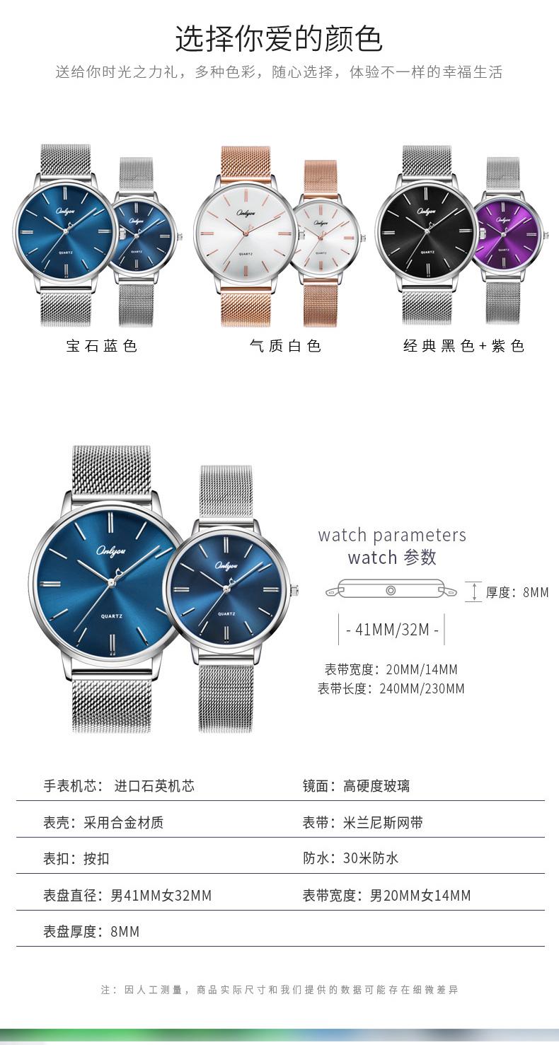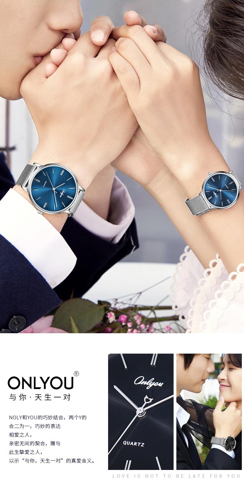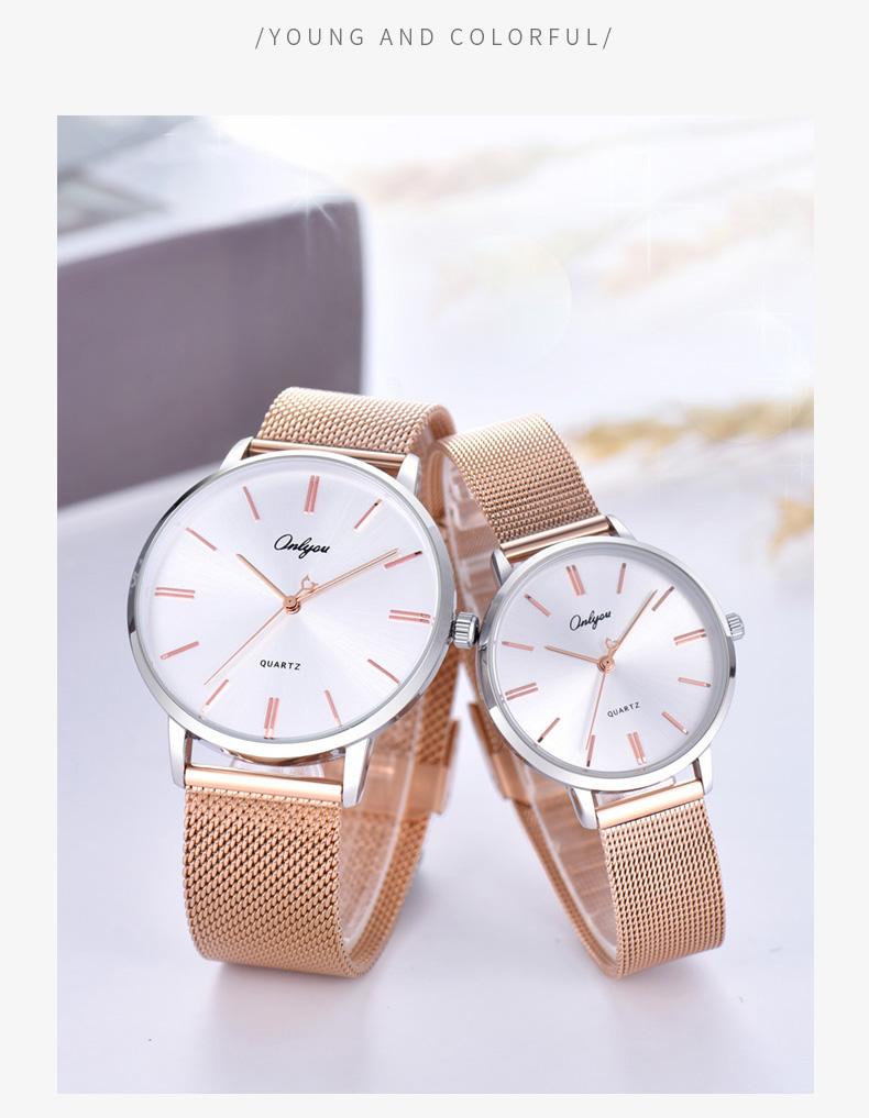 Reloj de Pareja de Moda Olini Par Reloj de Cuarzo Delgado Correa de Acero Reloj Casual para Hombre Reloj de Moda Impermeable Grabado para Mujer