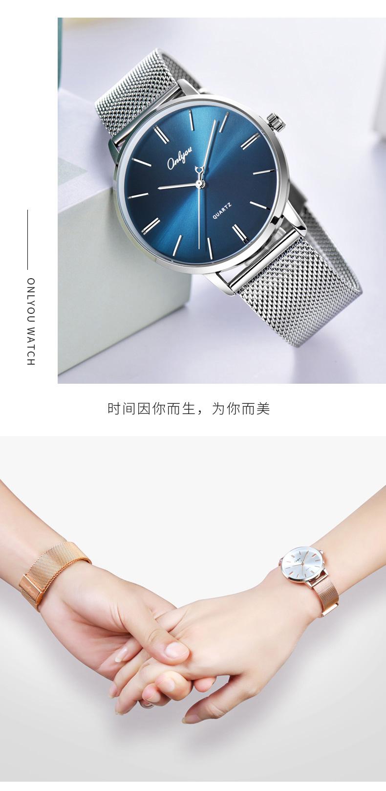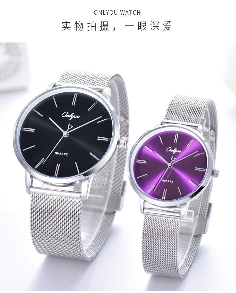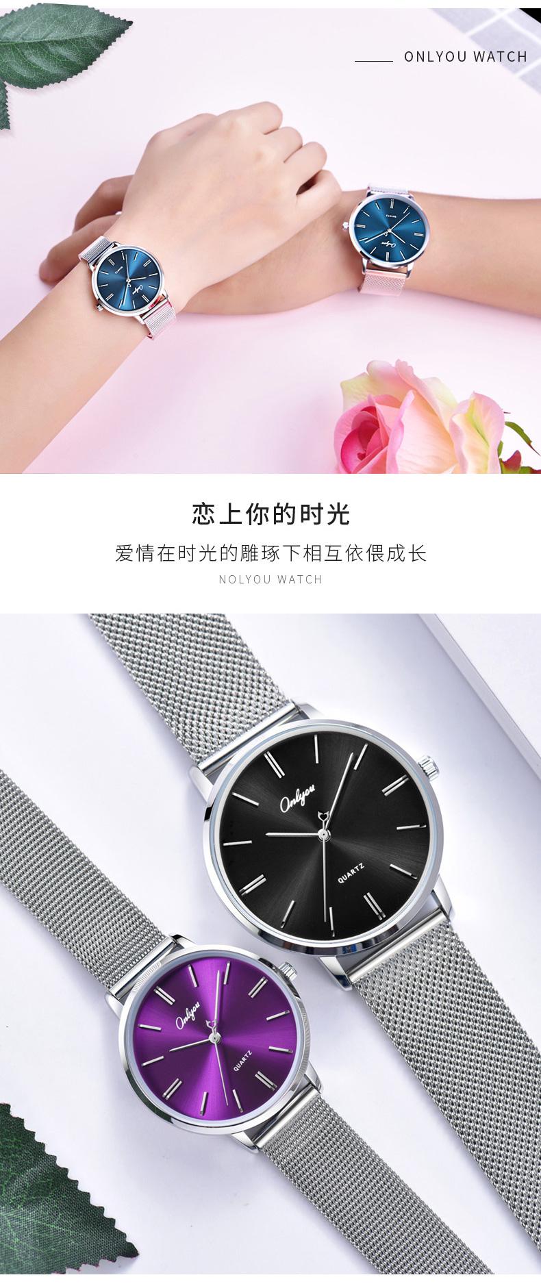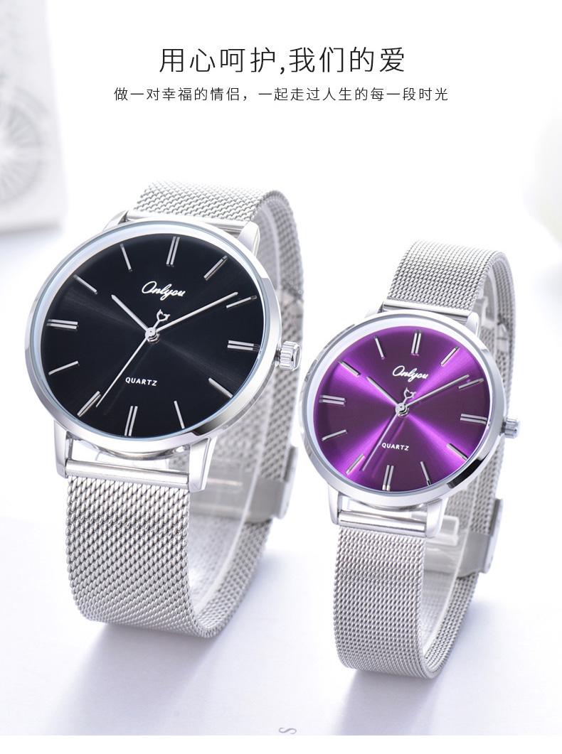 Reloj de Pareja de Moda Olini Par Reloj de Cuarzo Delgado Correa de Acero Reloj Casual para Hombre Reloj de Moda Impermeable Grabado para Mujer