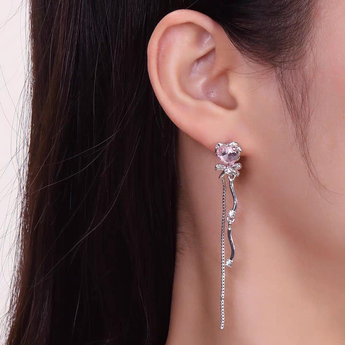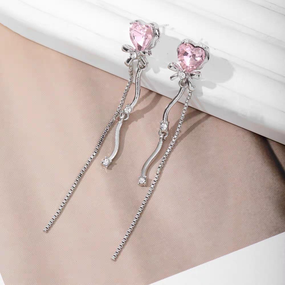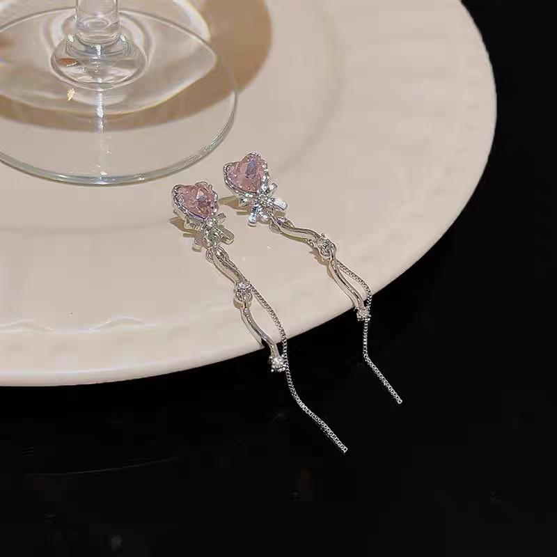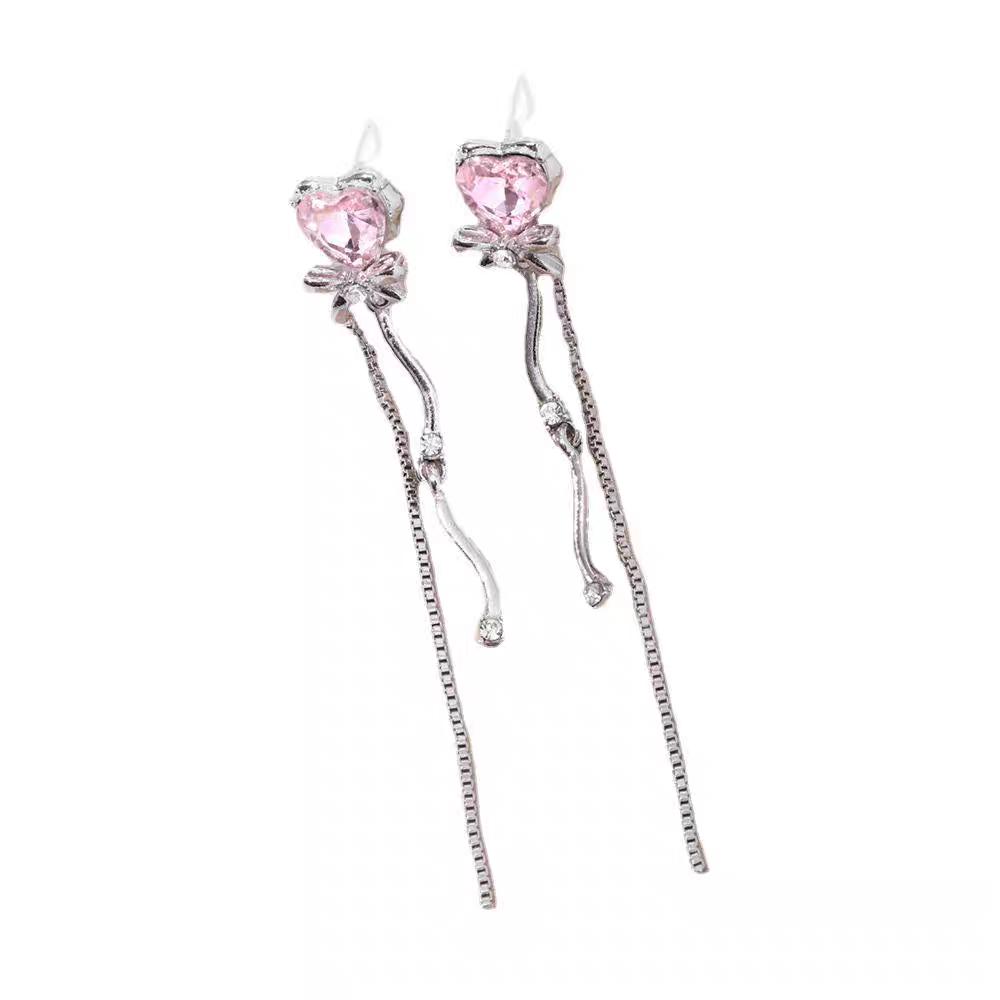 Aretes Largos de Borla de Corazón de Circonita Diseño Nicho Único Aretes Super Hada Dulces
