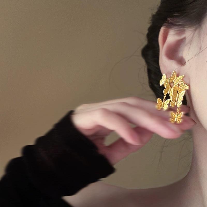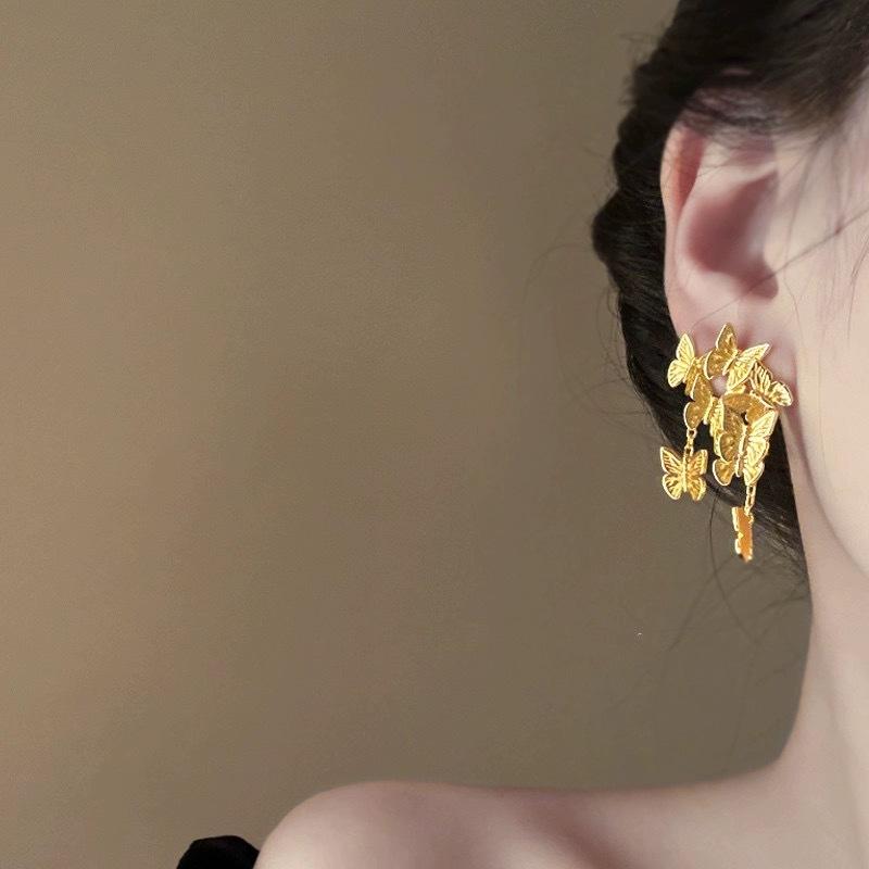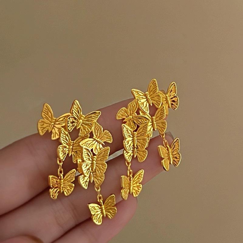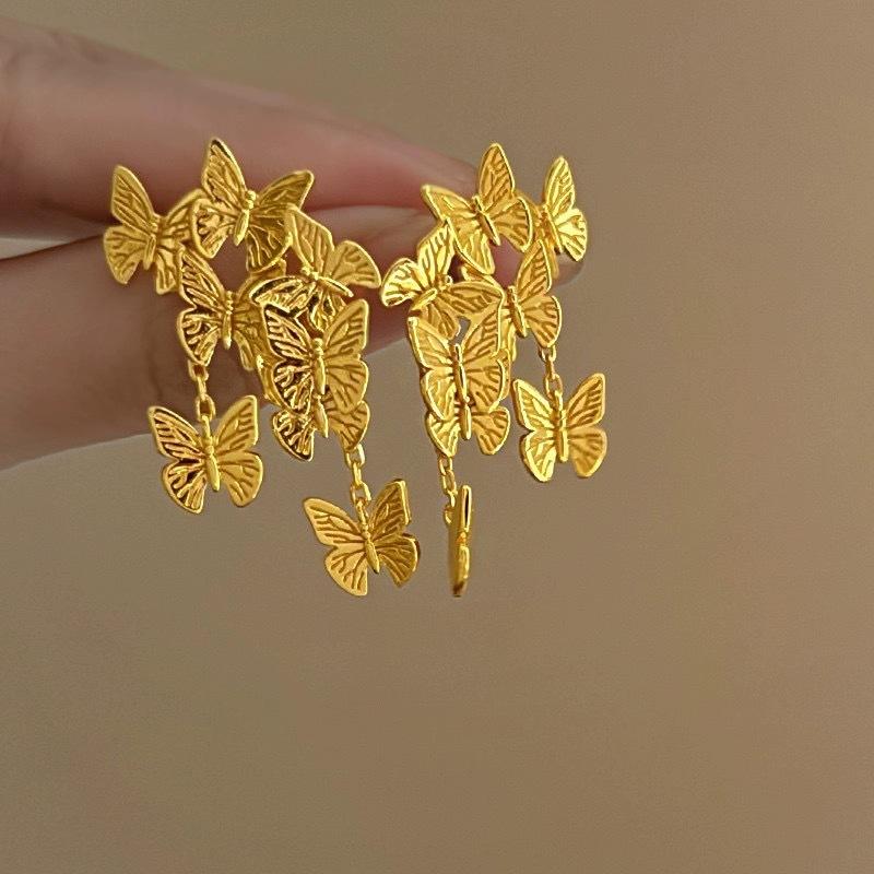 Pendientes de mariposa con borlas tridimensionales de metal retro de súper hada 2024, nuevos pendientes de lujo ligeros con diseño de nicho de gran sentido
