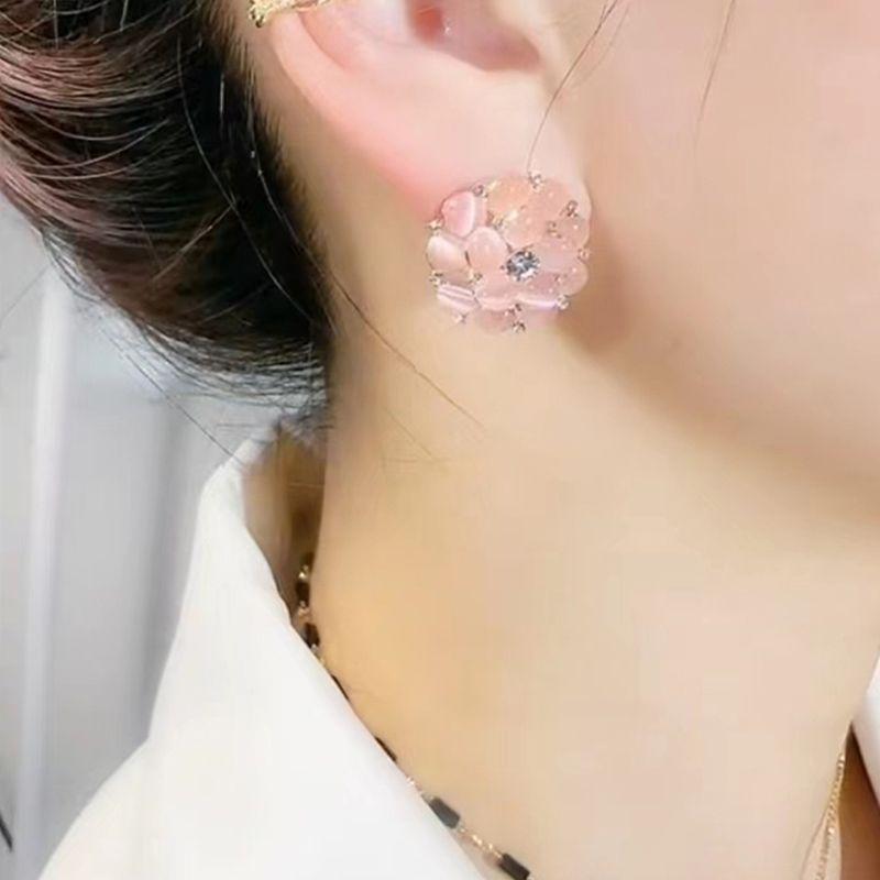 Aretes de Flores Rosas Adecuados para Primavera 2023 Nueva Moda Coreana Celebridad de Internet Elegantes Exquisitos Aretes de Alta Gama