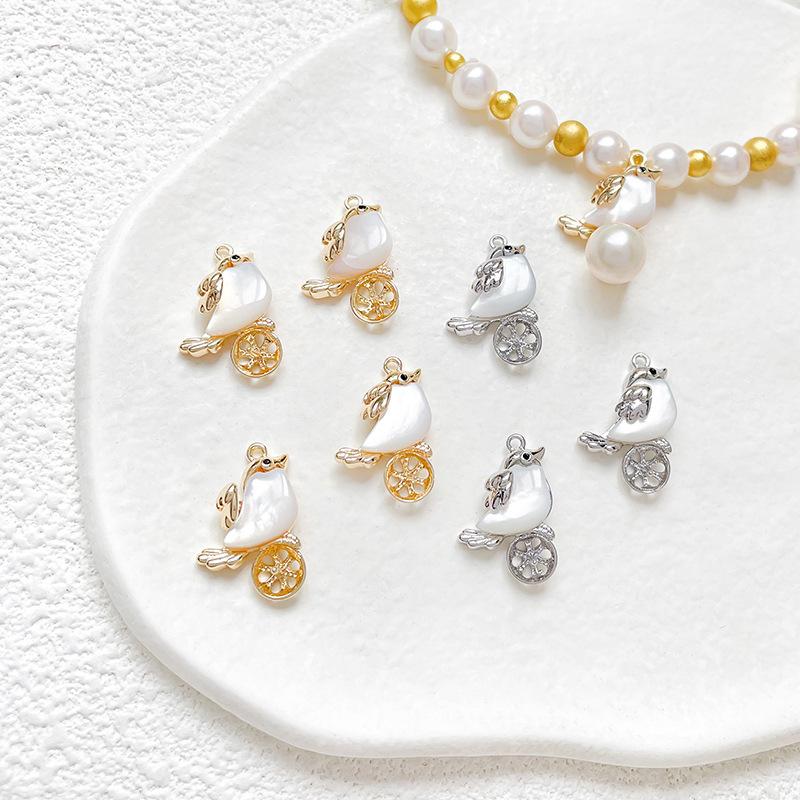 Compra Colgante de pájaro de mica Fritillaria bañado en cobre y oro auténtico, con perlas, para pulsera, collar y pendientes, accesorios. al por mayor en Joom.pro