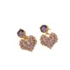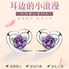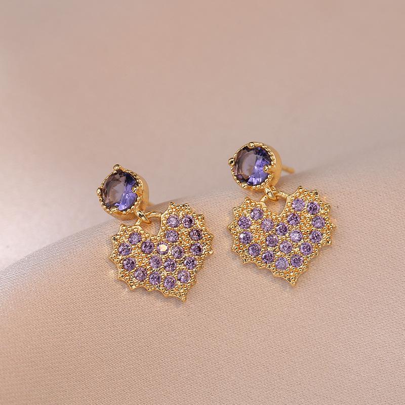 Aretes para Mujer, Pendientes Simples en Forma de Corazón Morado con Pedrería, Pendientes de Moda, Aguja de Plata Nueva de Tendencia, Efecto Adelgazante para la Cara, Elegante Estilo de Celebridad de Internet