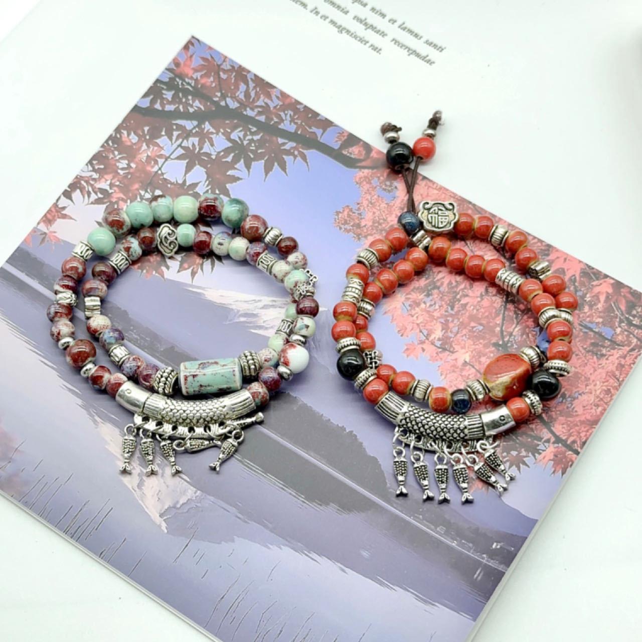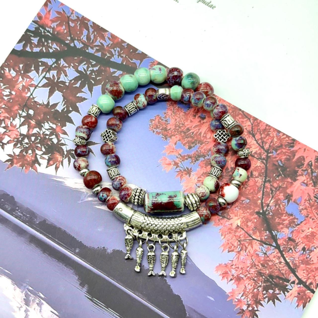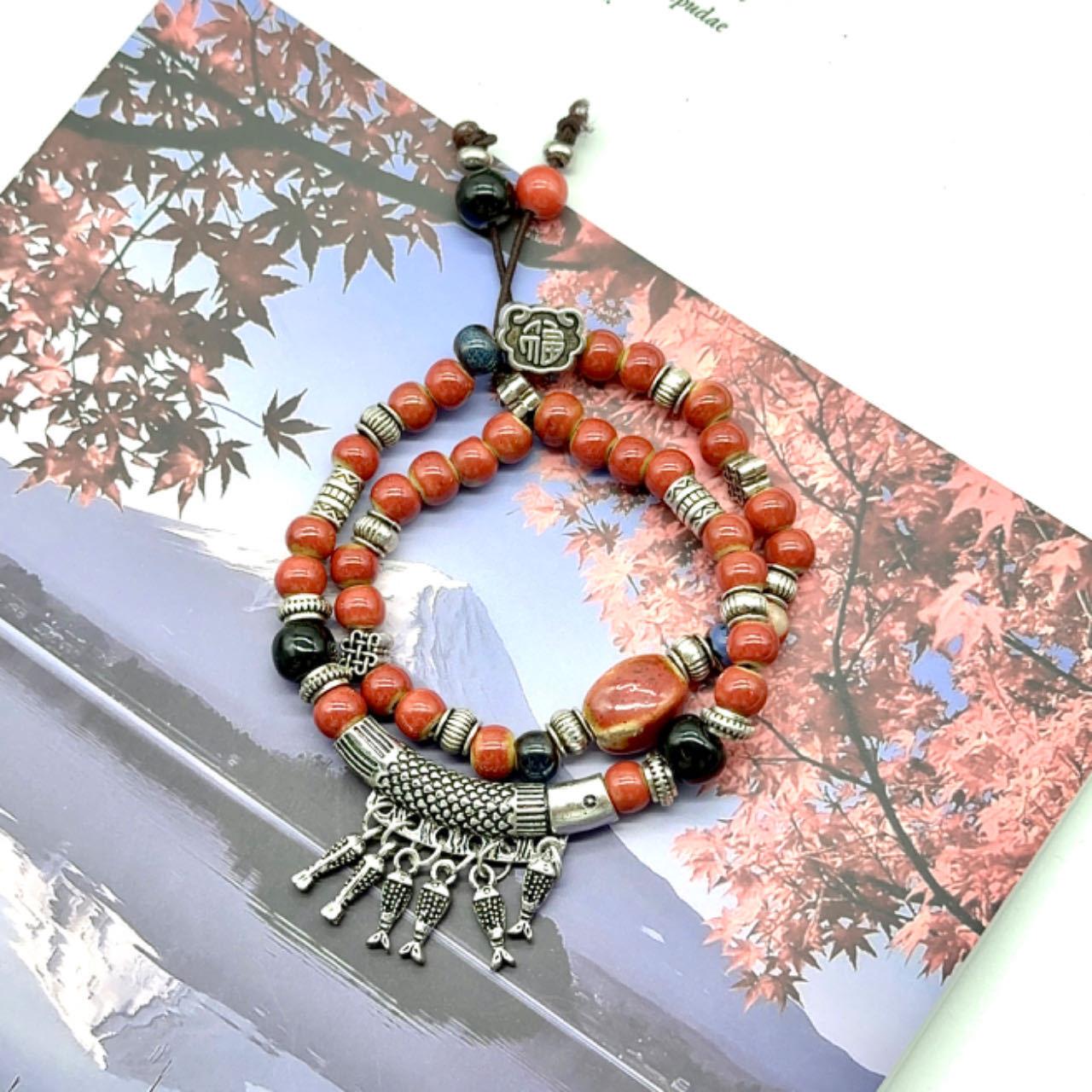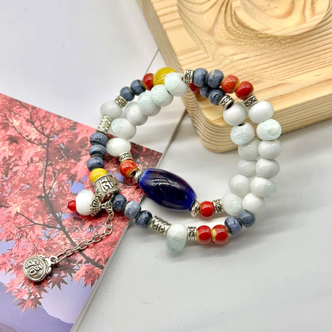 Nueva pulsera de doble anillo, pulsera creativa y colorida, pulsera de doble anillo para mujer de estilo tradicional chino hecha a mano
