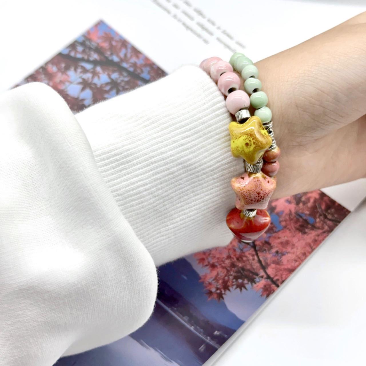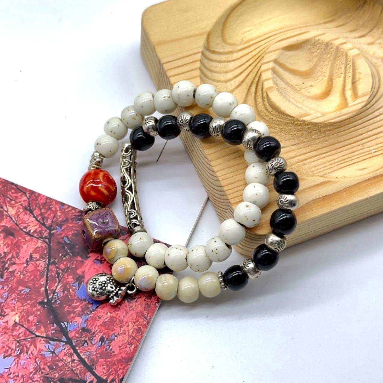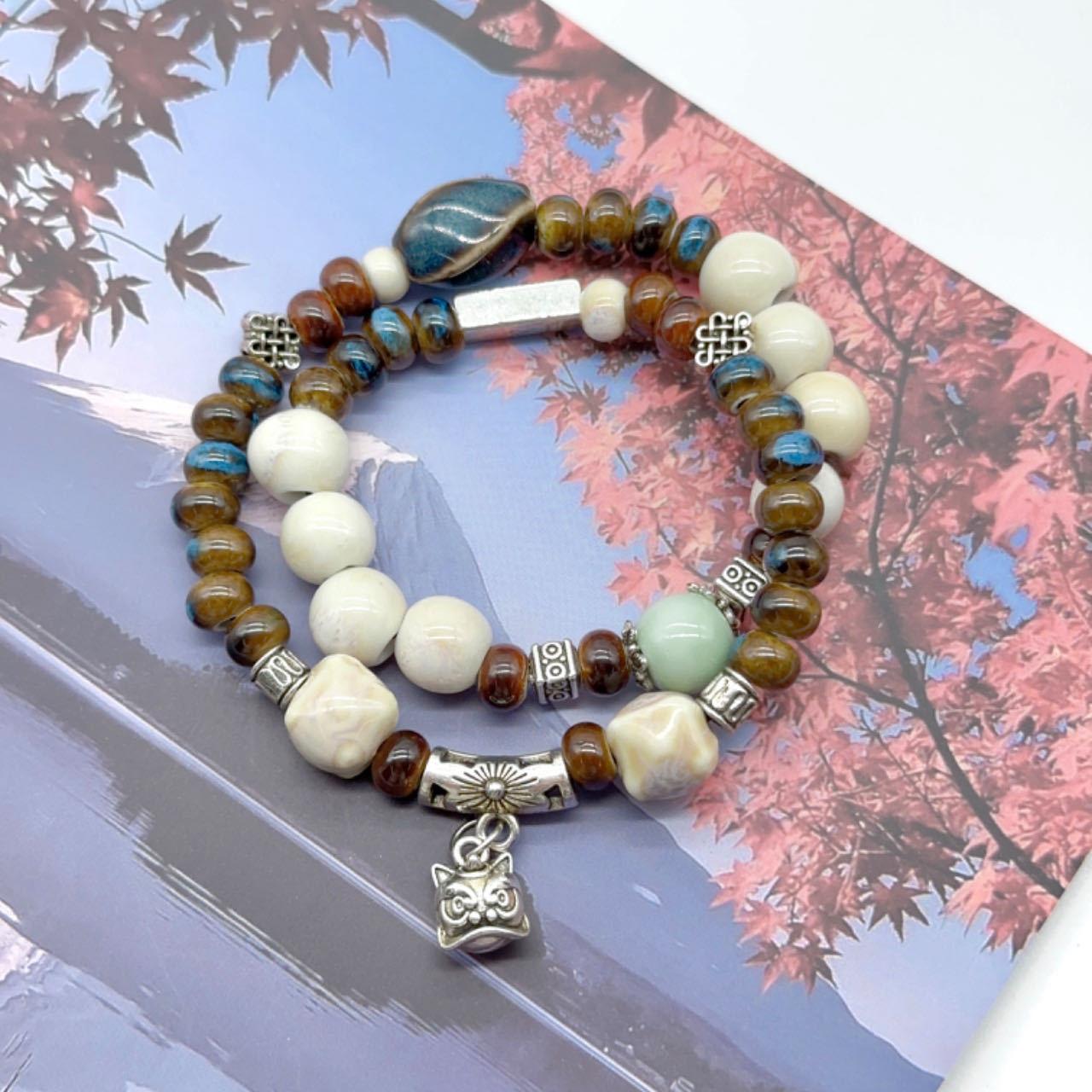 Nueva pulsera de doble anillo, pulsera creativa y colorida, pulsera de doble anillo para mujer de estilo tradicional chino hecha a mano