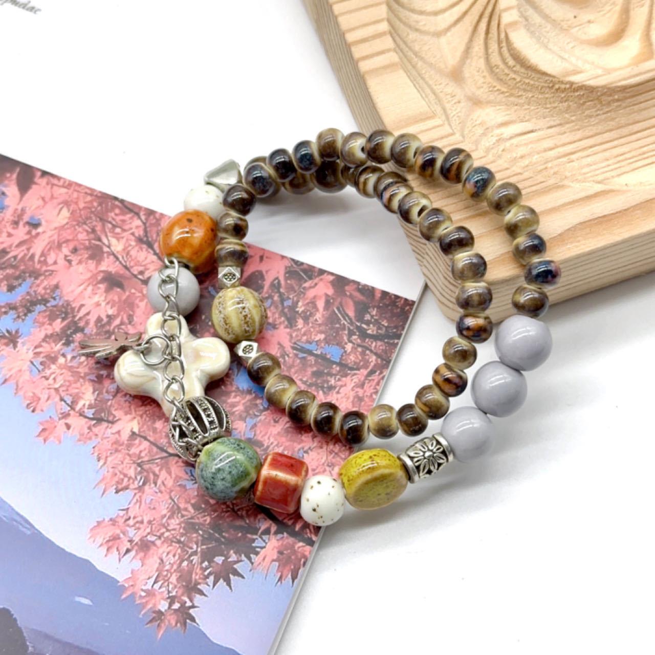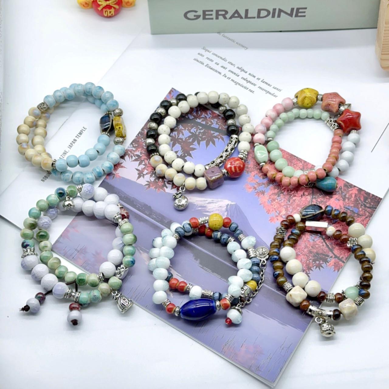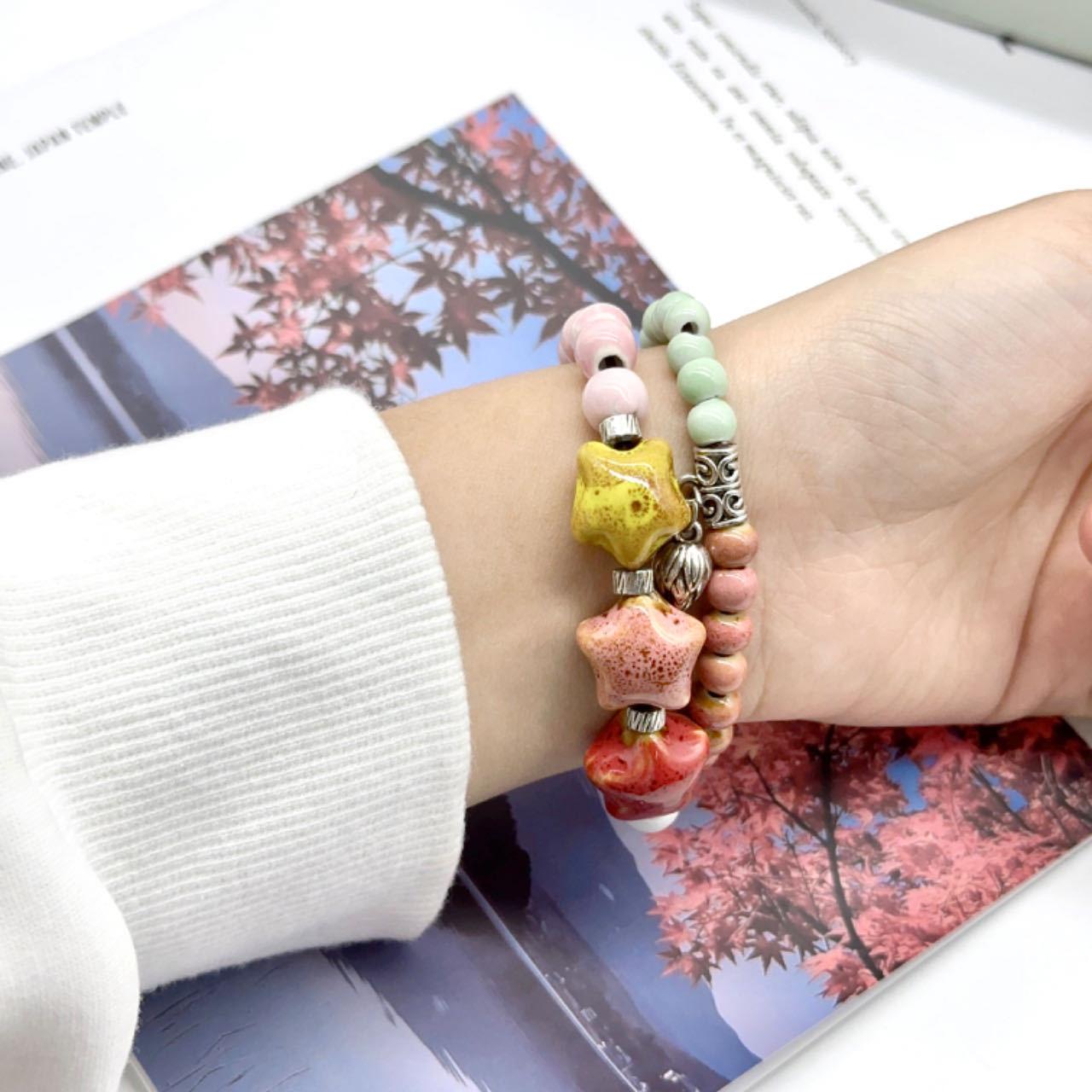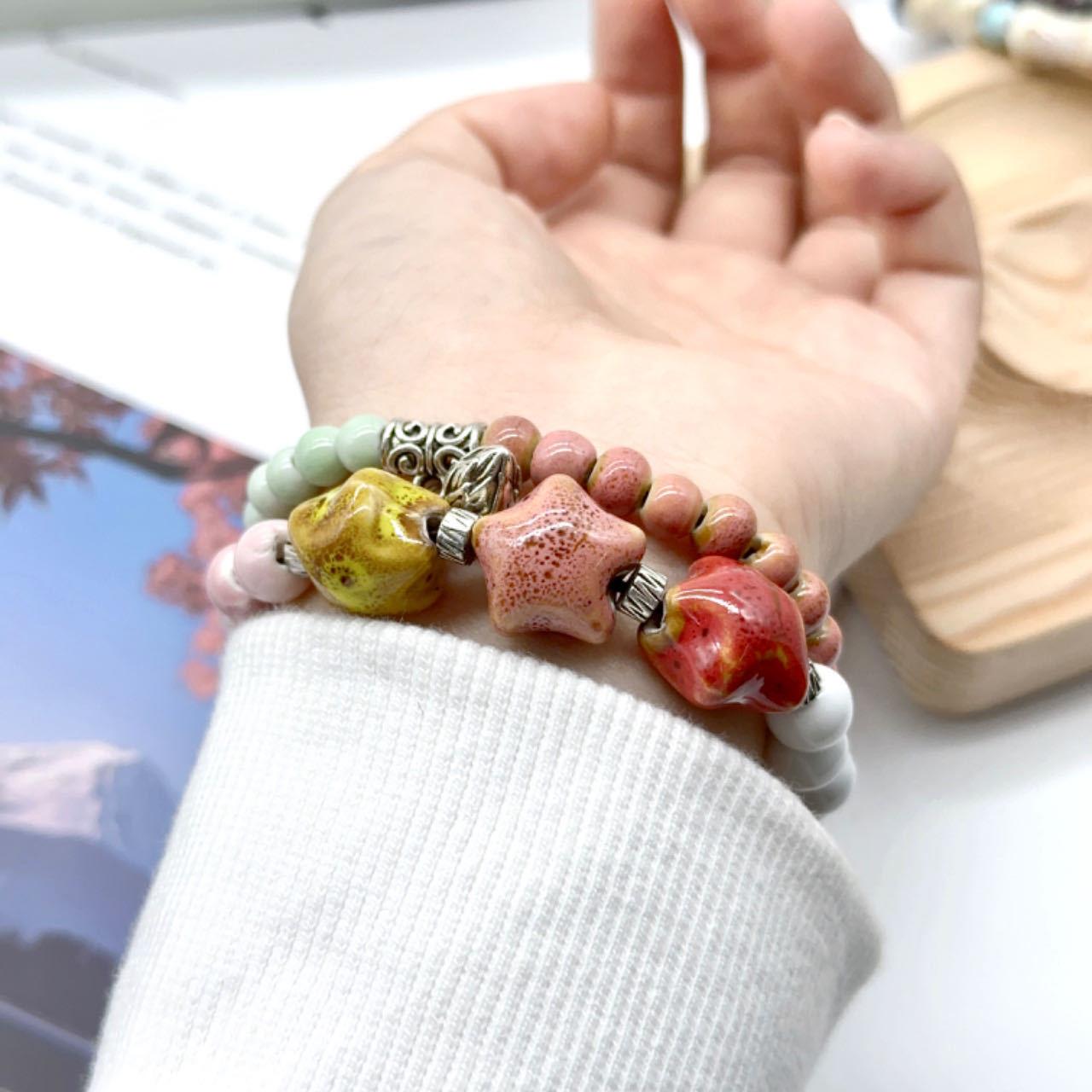 Nueva pulsera de doble anillo, pulsera creativa y colorida, pulsera de doble anillo para mujer de estilo tradicional chino hecha a mano