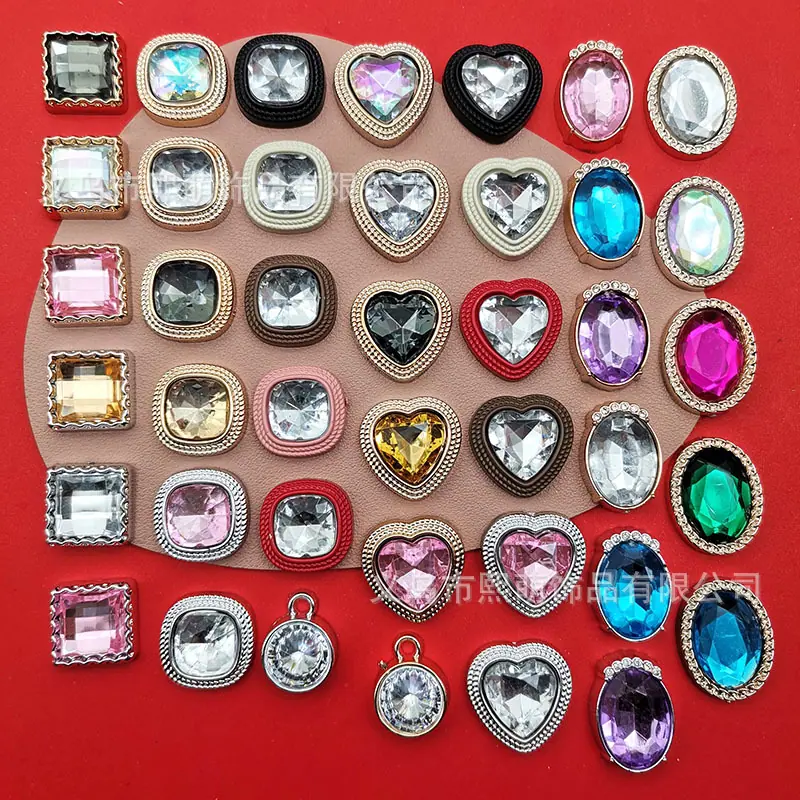 Simulado Corazón Cuadrado Ovalado Ojo de Gato Diamante de Color Piedra Preciosa Plástico Accesorios DIY Funda de Teléfono Pasador Hebilla de Zapato Pegatina