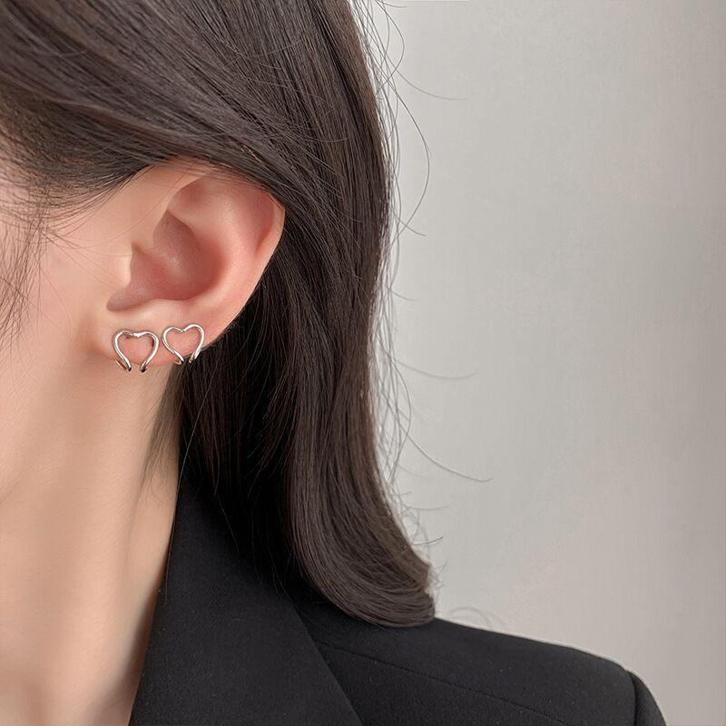 Pendientes de clip de amor de doble cara, sencillos y modernos, sin agujeros para las orejas, estilo frío y distintivo para mujer.