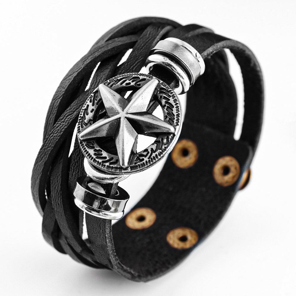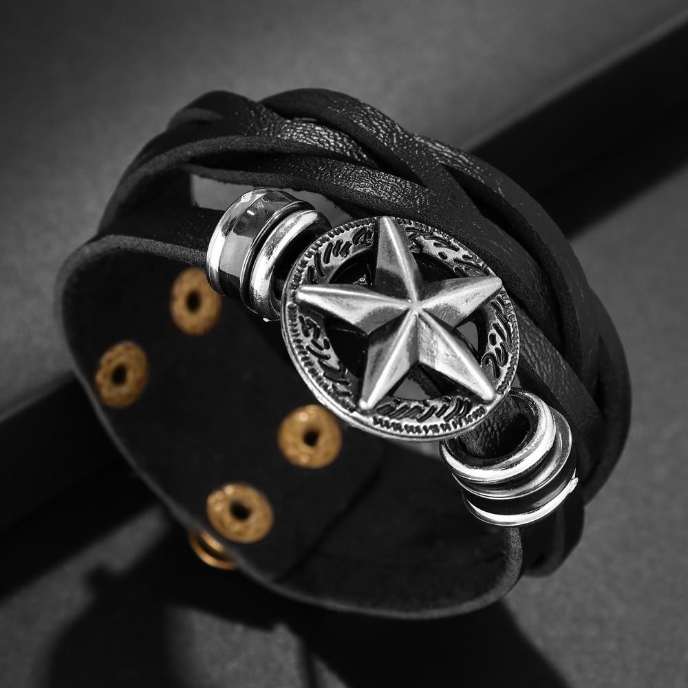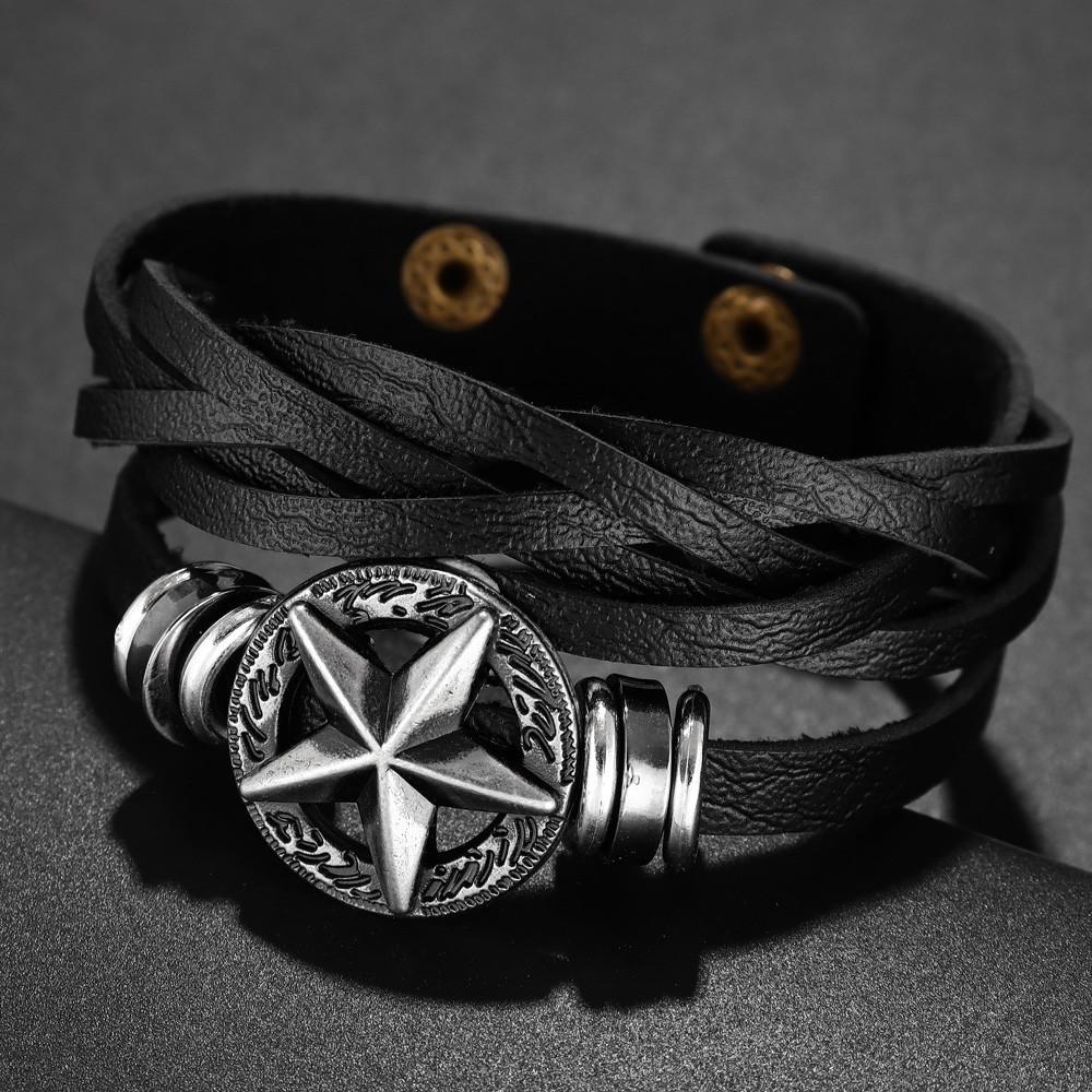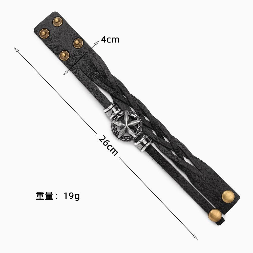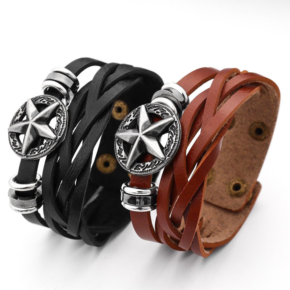 Pulsera de cuero retro estilo hip hop para hombre, estilo europeo y americano, joyería de cuero, pulsera personalizada con estrella de cinco puntas estilo punk.
