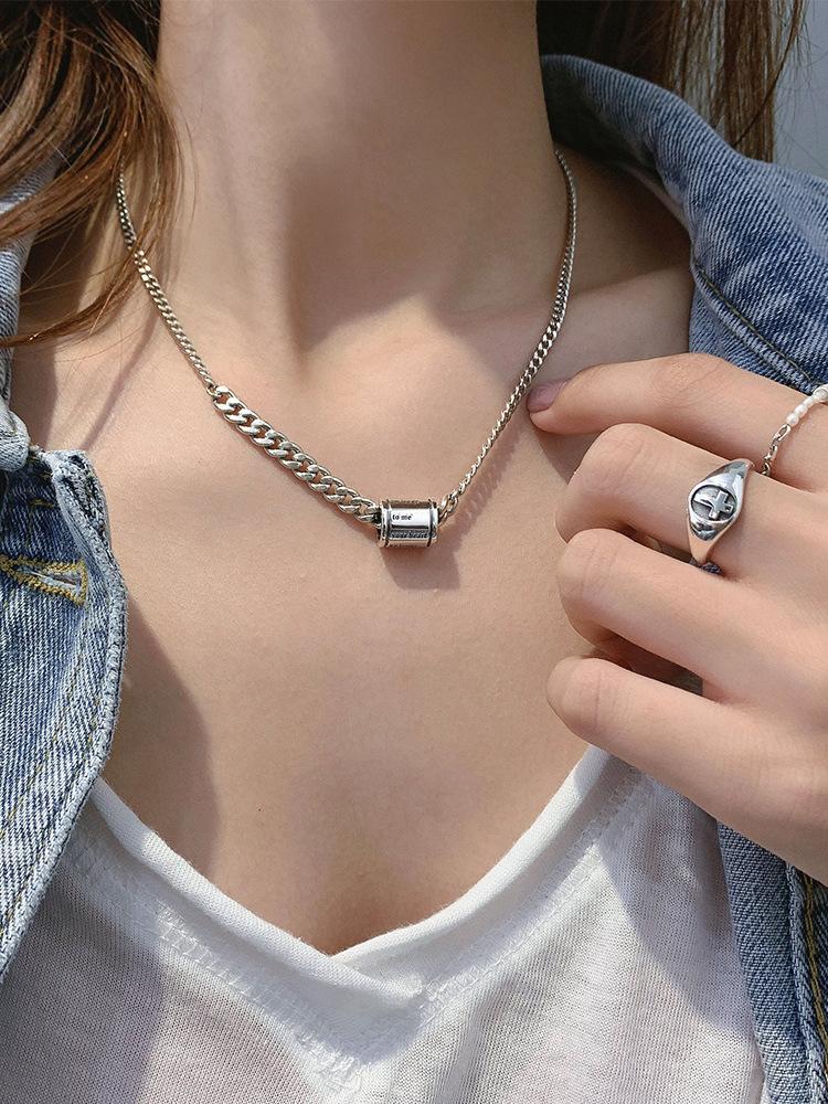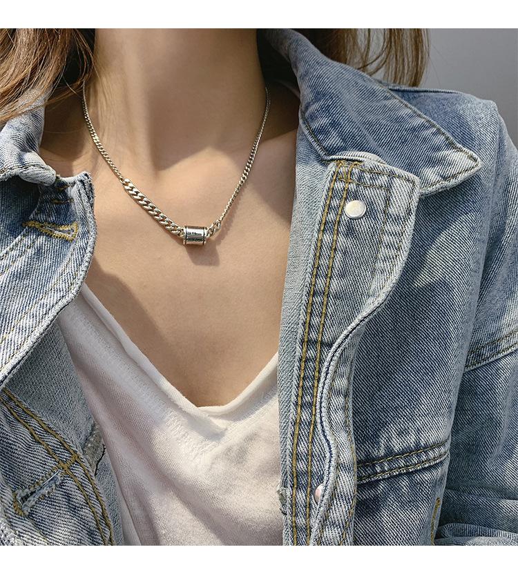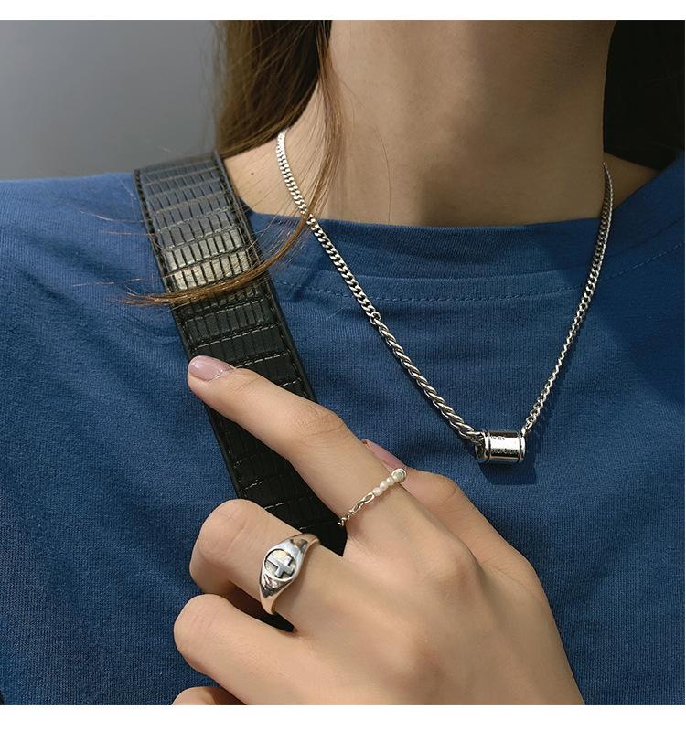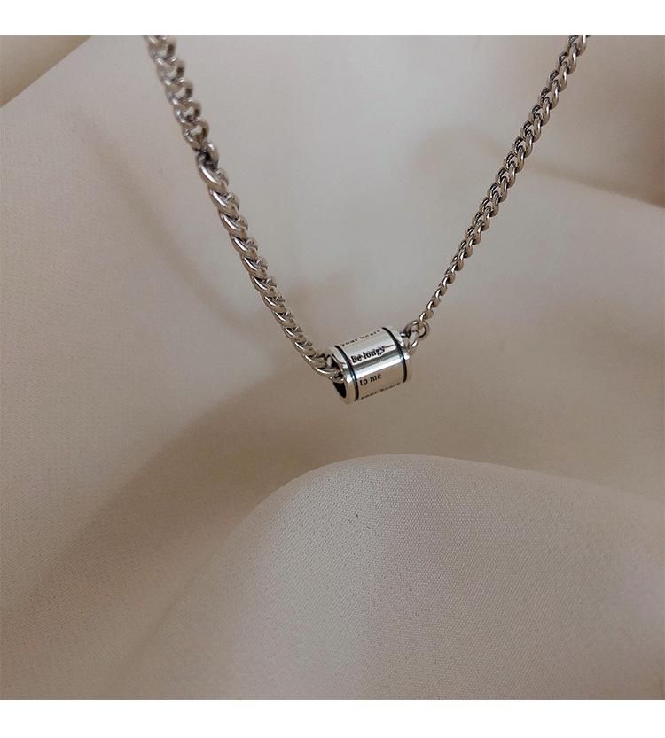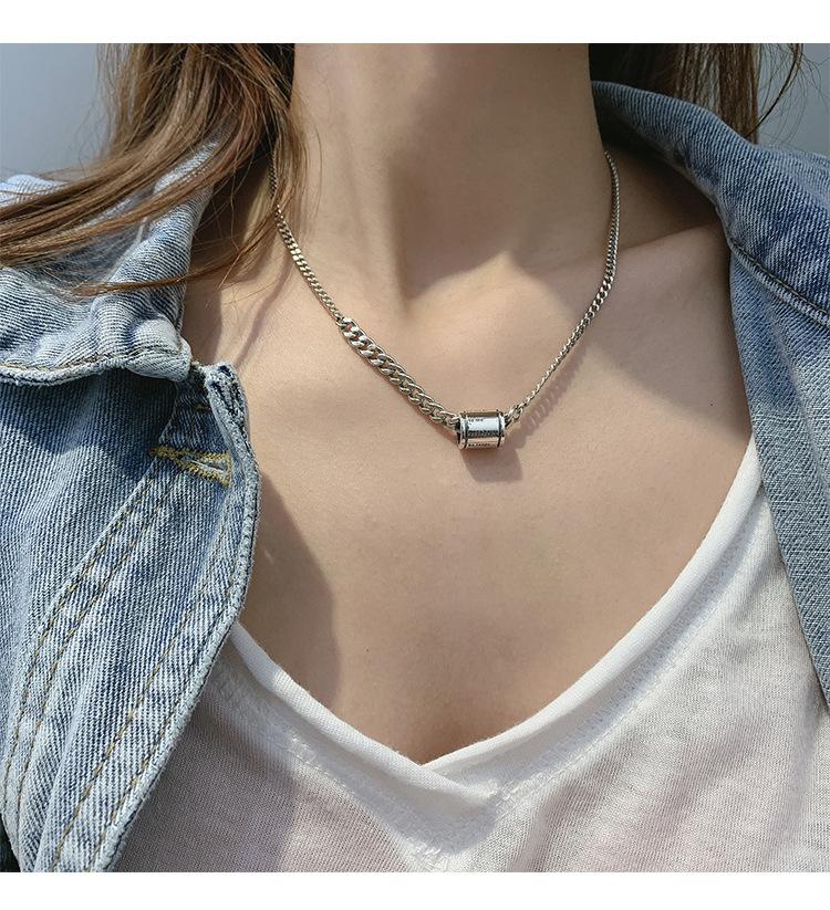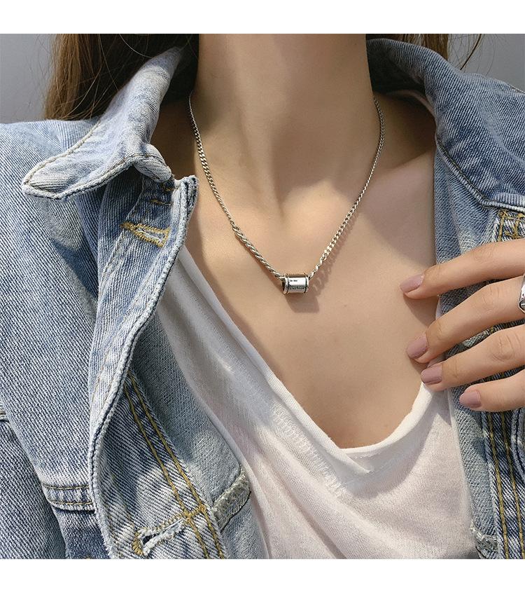 Collar cilíndrico vintage de plata de ley 925 bañado en plata tailandesa para parejas, diseño de nicho para mujer, elegante, ligero, de lujo, joyería de celebridades de Internet.