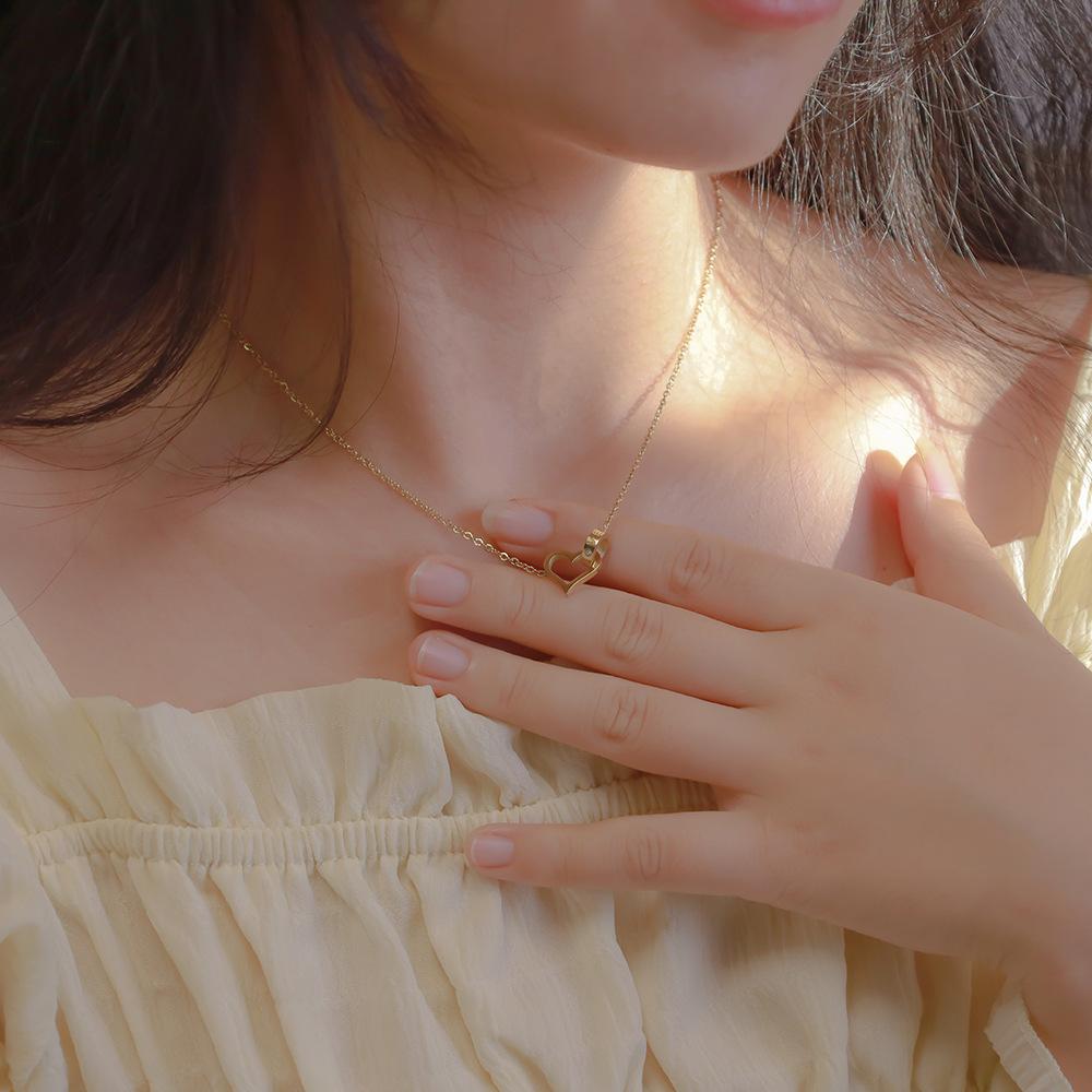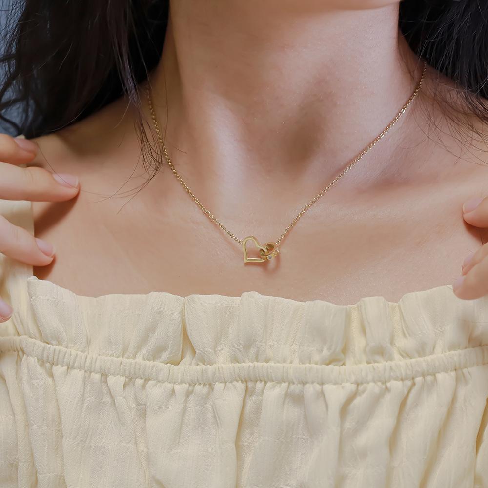 Japonés y Coreano Nueva Moda Colgante Anillo-enlace Amor Cadena Clavícula Simple Cadena de Cuello de Oro de 18k No Descolorido Artículo de Acero de Titanio