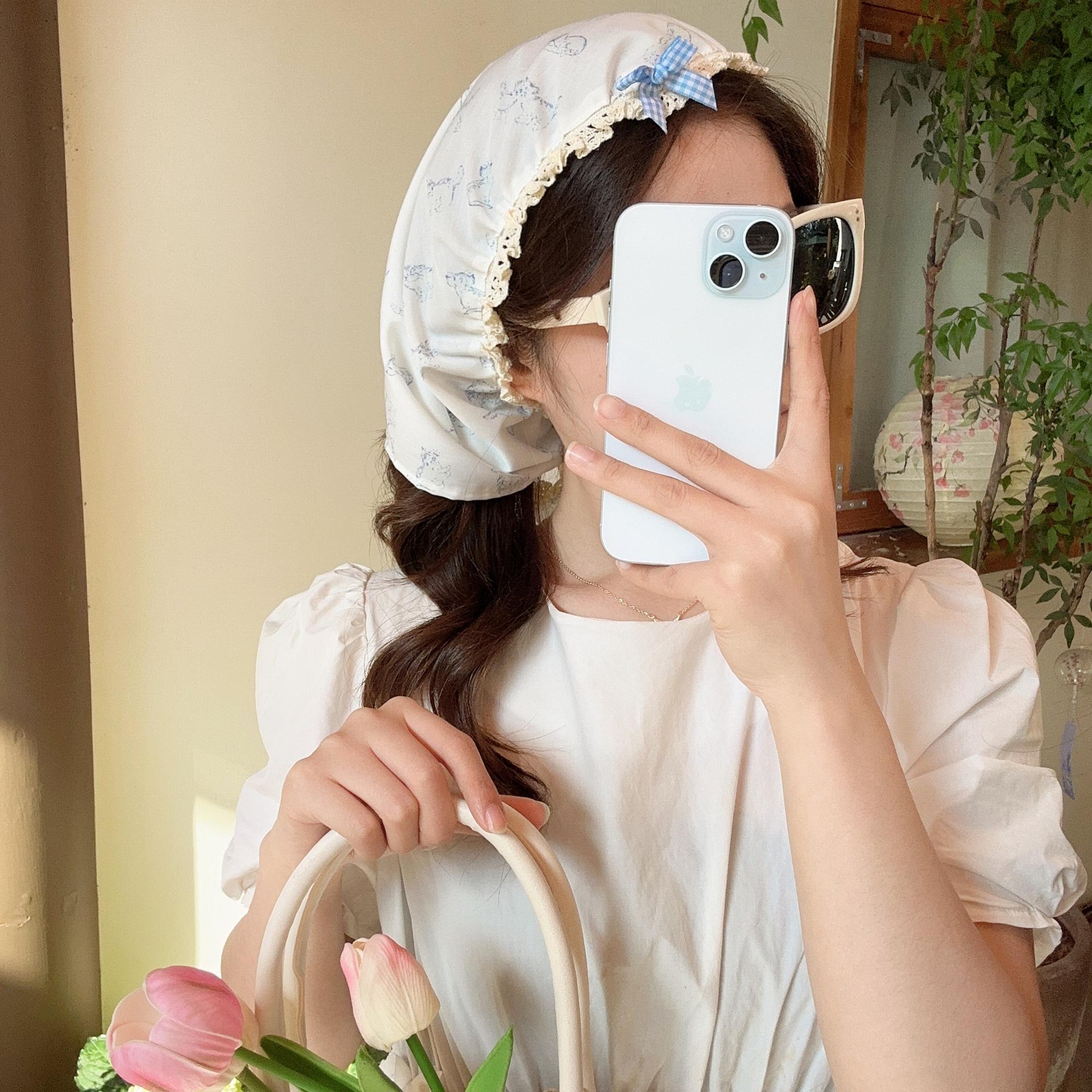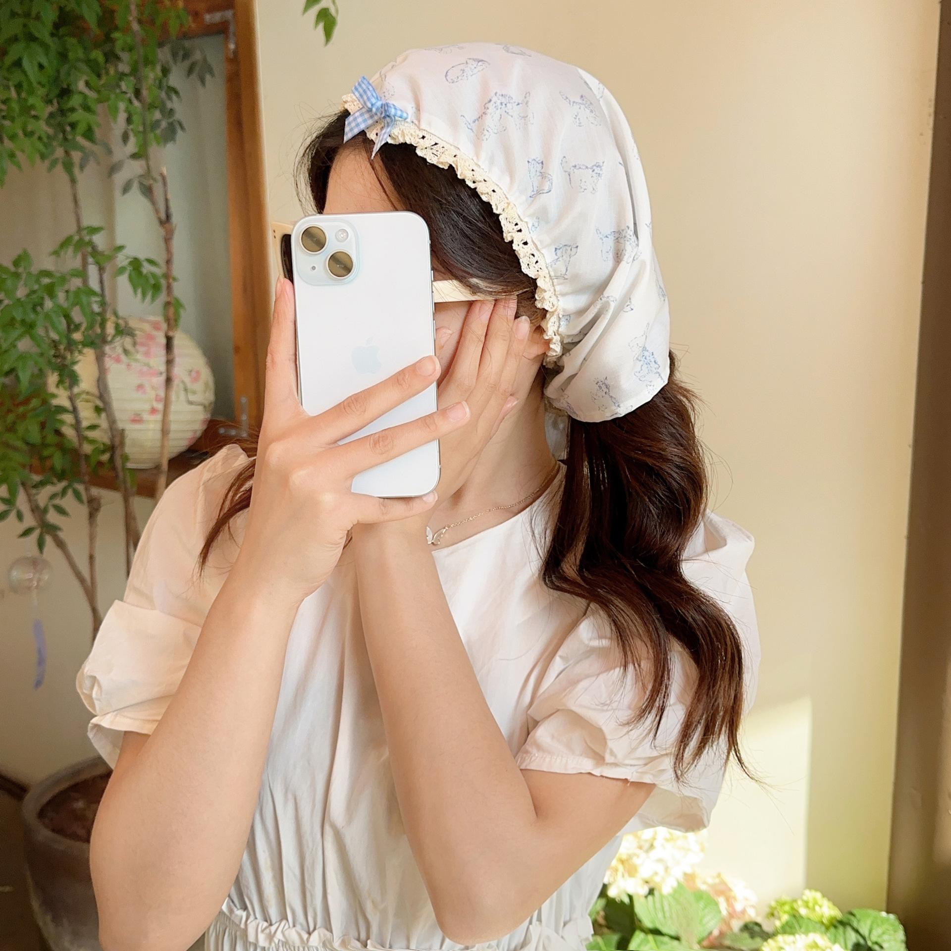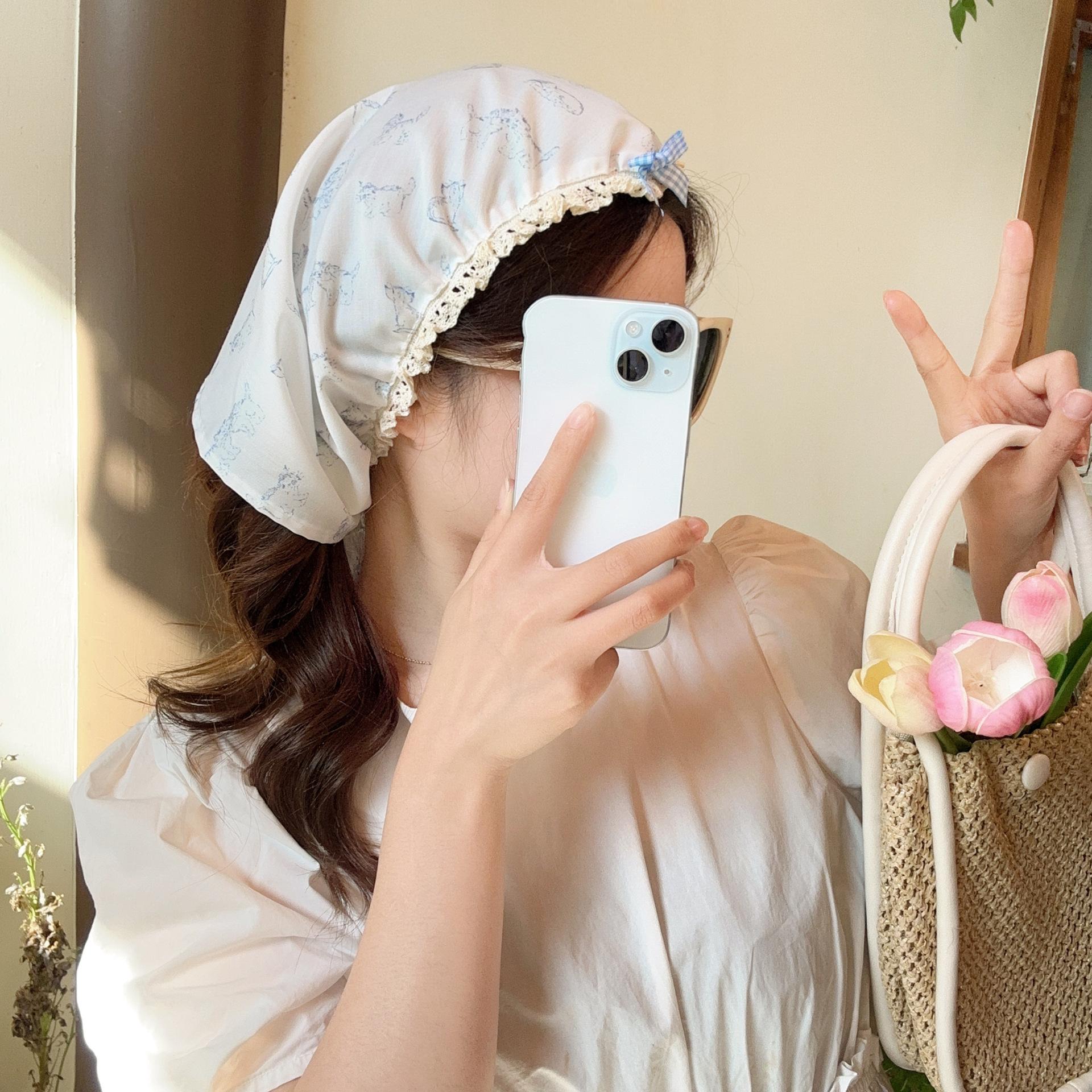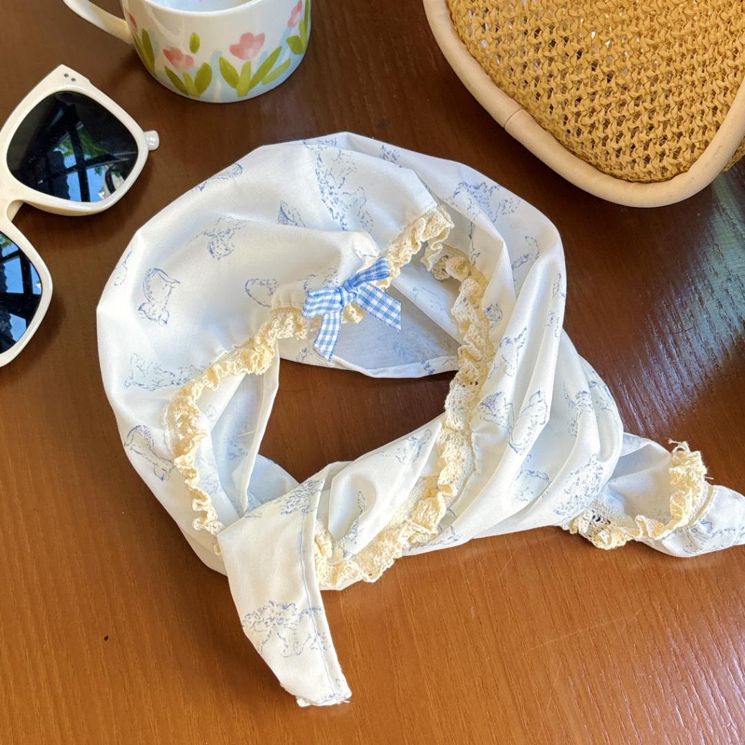 Lace-edged kitten triangle scarf, Blue edging kitten triangle towel