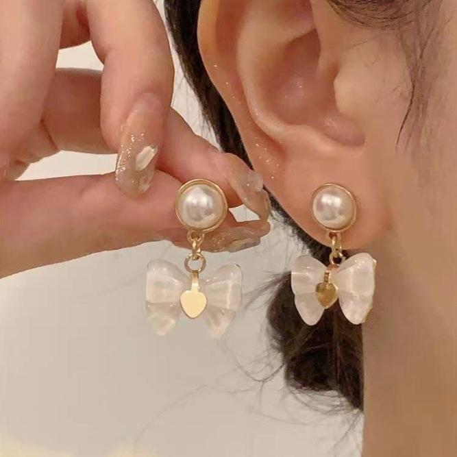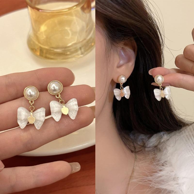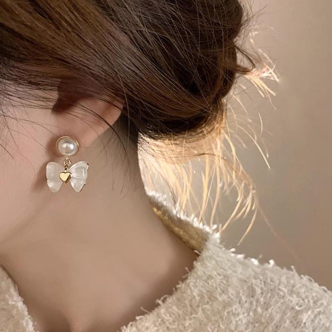 Aretes de Lazo Francés de Perlas Modernos y Exquisitos Diseño de Nicho Aretes de Temperamento de Alta Gama Aretes de Lujo Ligero
