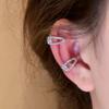 Japonés y coreano nueva moda pequeño fresco clip de oreja sin oreja de cartílago chapado en latón platino con incrustaciones de pedrería pendientes novedosos
